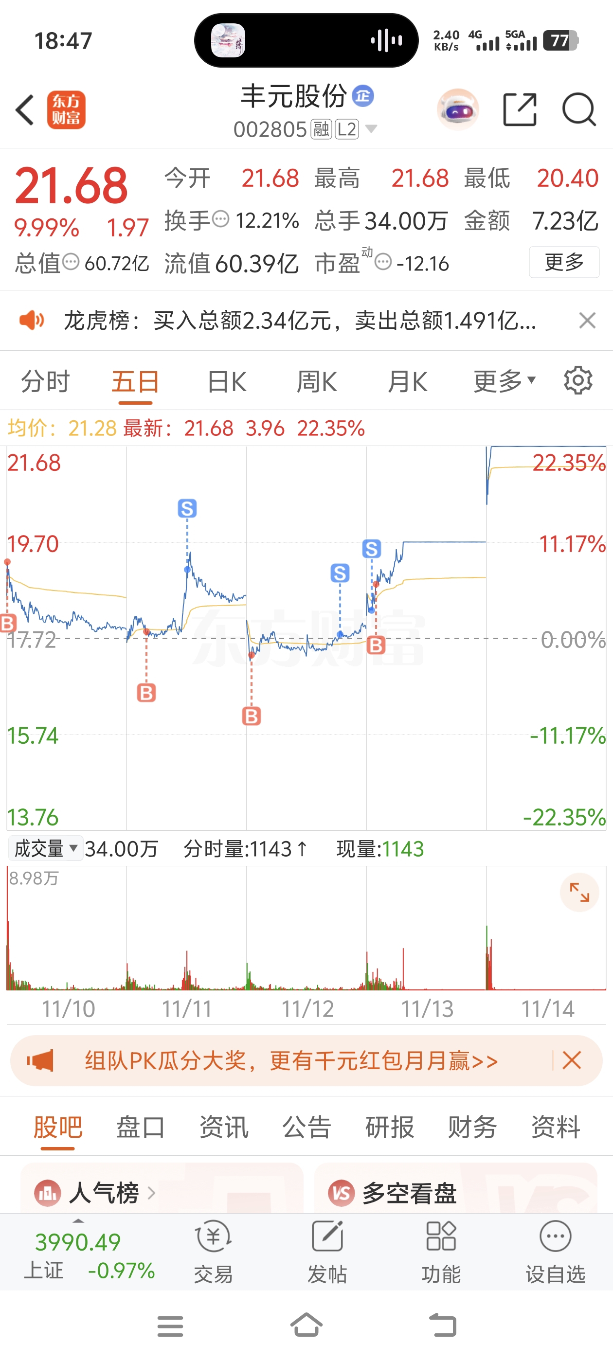 $丰元股份(SZ002805)$ 这次终于没操作错