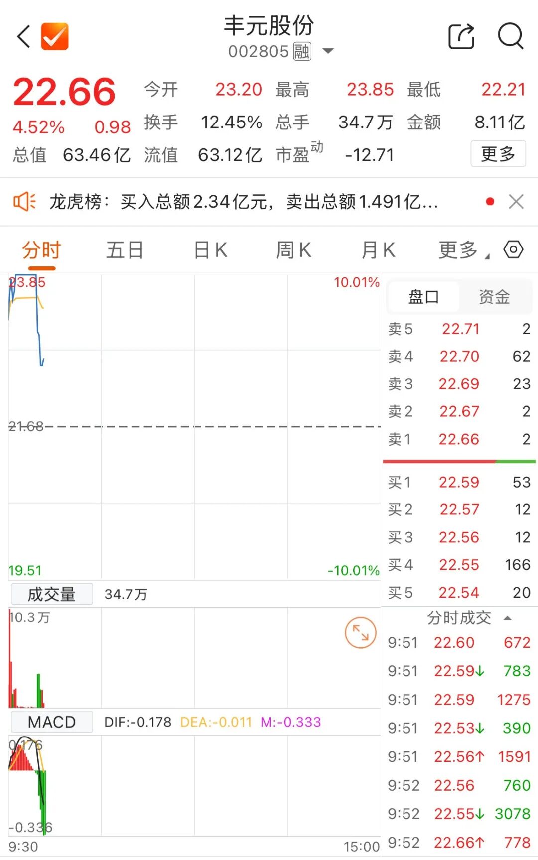 17日早间,丰元股份(002805)股价开盘后快速上涨,触及涨停,随后却突然直线下跌,截至发稿涨4.52%。