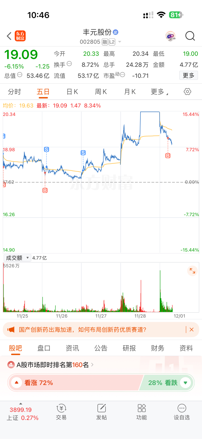 $丰元股份(SZ002805)$ 一买就跌,一卖就涨,这个主力也很e的