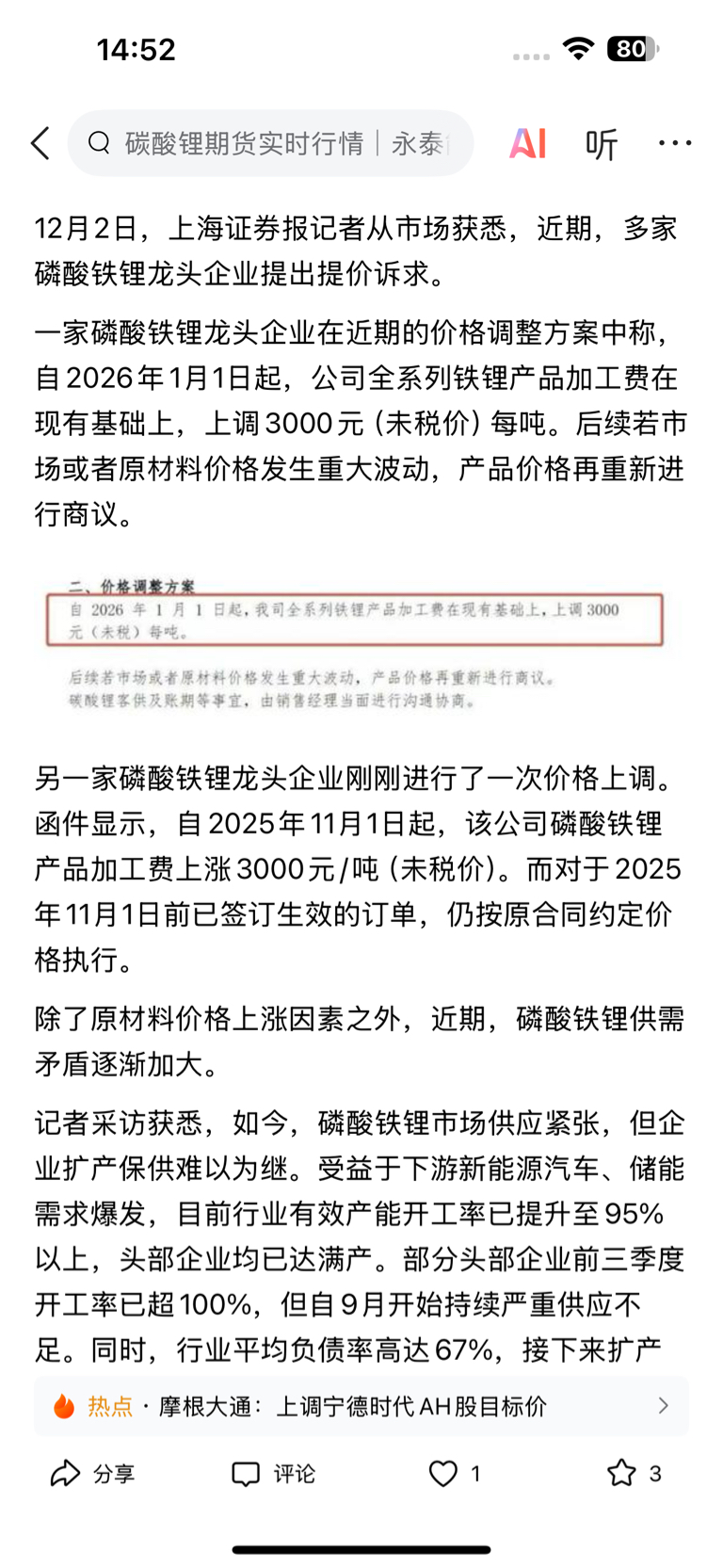 磷酸铁锂也开始涨价了,慢慢的就会摆脱电池厂的价格压制。