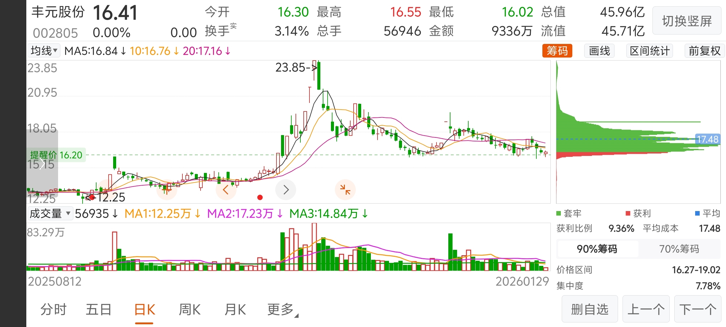$丰元股份(SZ002805)$ 又回到支撑位,看能不能在这里再向上启动