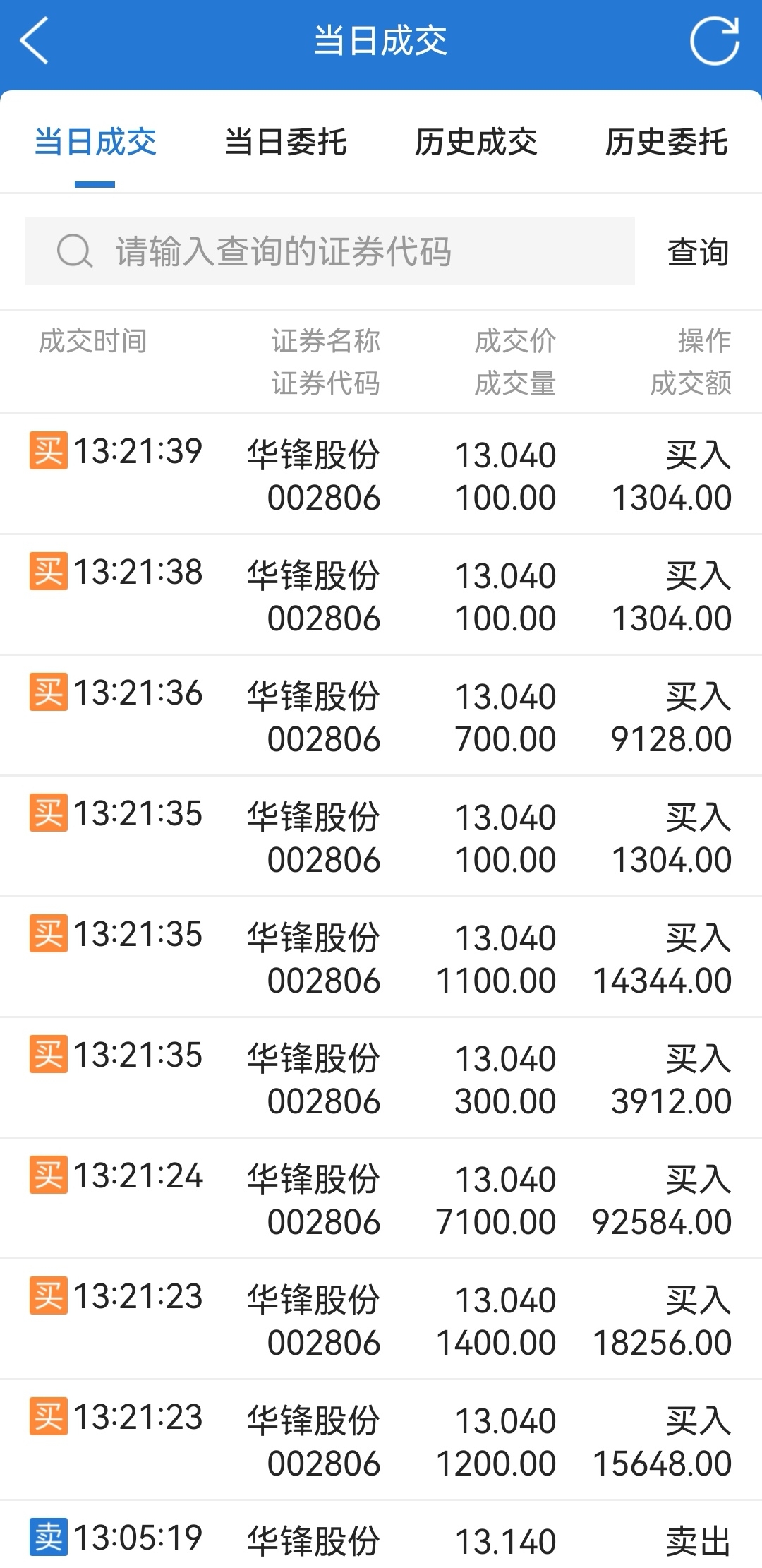 $华锋股份(SZ002806)$ 早盘在14元以上抛的筹码,在13.04已买回12100股