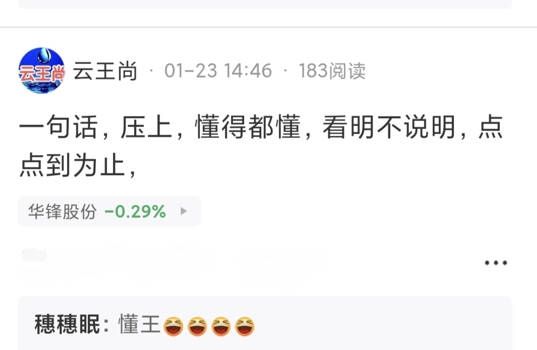 1月.23号收盘前(华锋股份估计13.40左右)给你们喊话,压上。