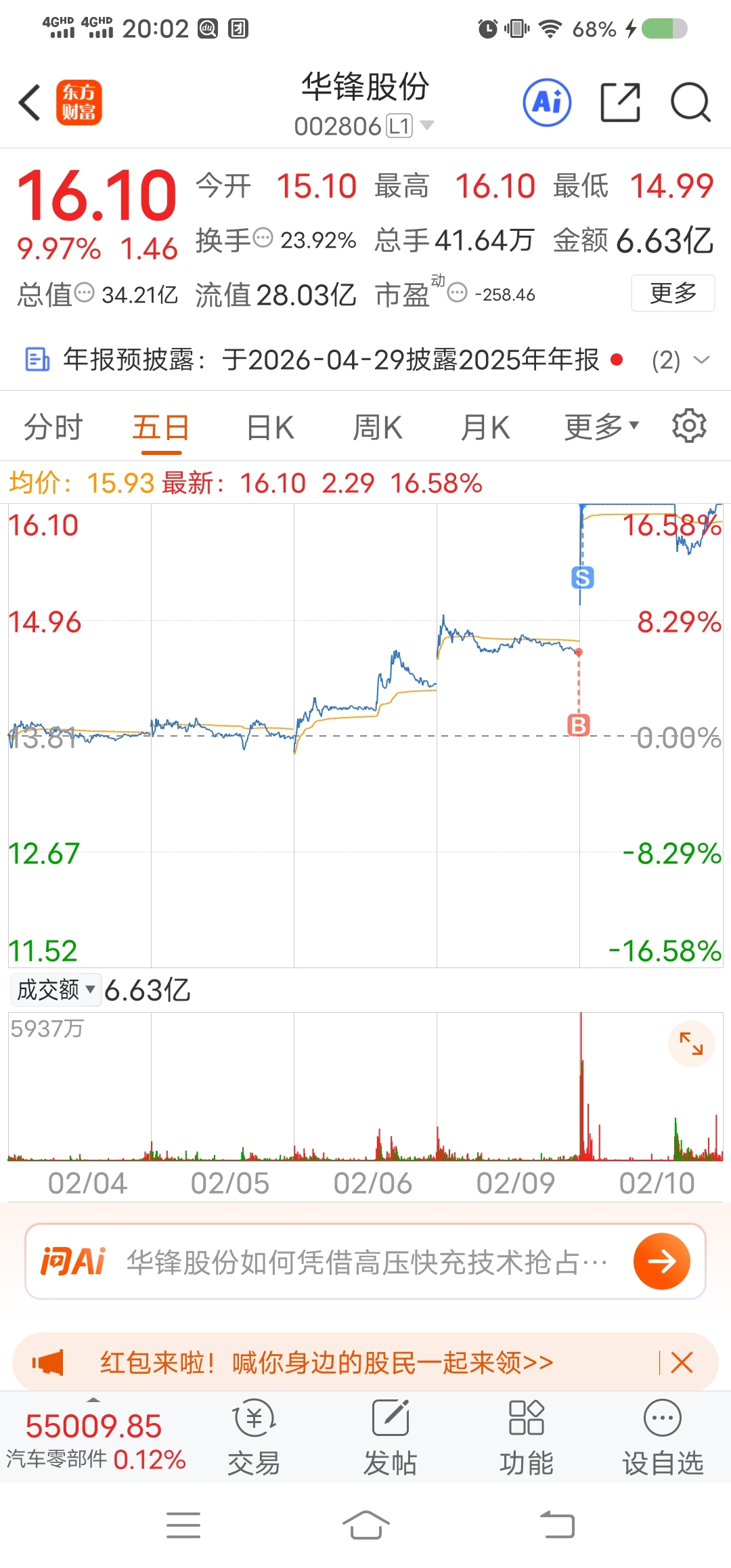 $华锋股份(SZ002806)$ 昨天集合竞价买今天涨停卖40手