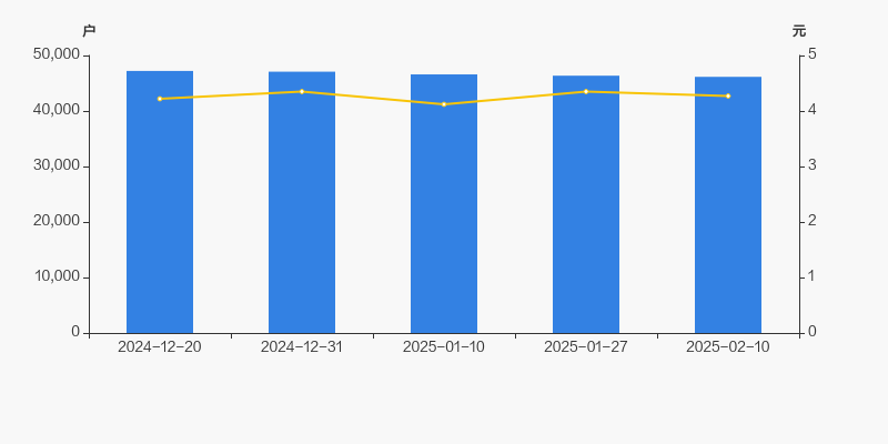 截至2025年2月10日,公司最新总股本为24.61亿股,其中流通股本为24.58亿股。户均持有流通股数量由上期的5.3万股上升至5.33万股,户均流通市值22.75万元。