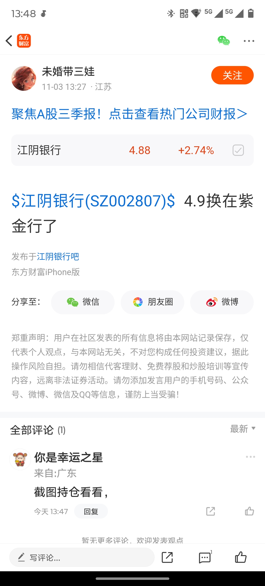 $江阴银行(SZ002807)$ 截图持仓看看。