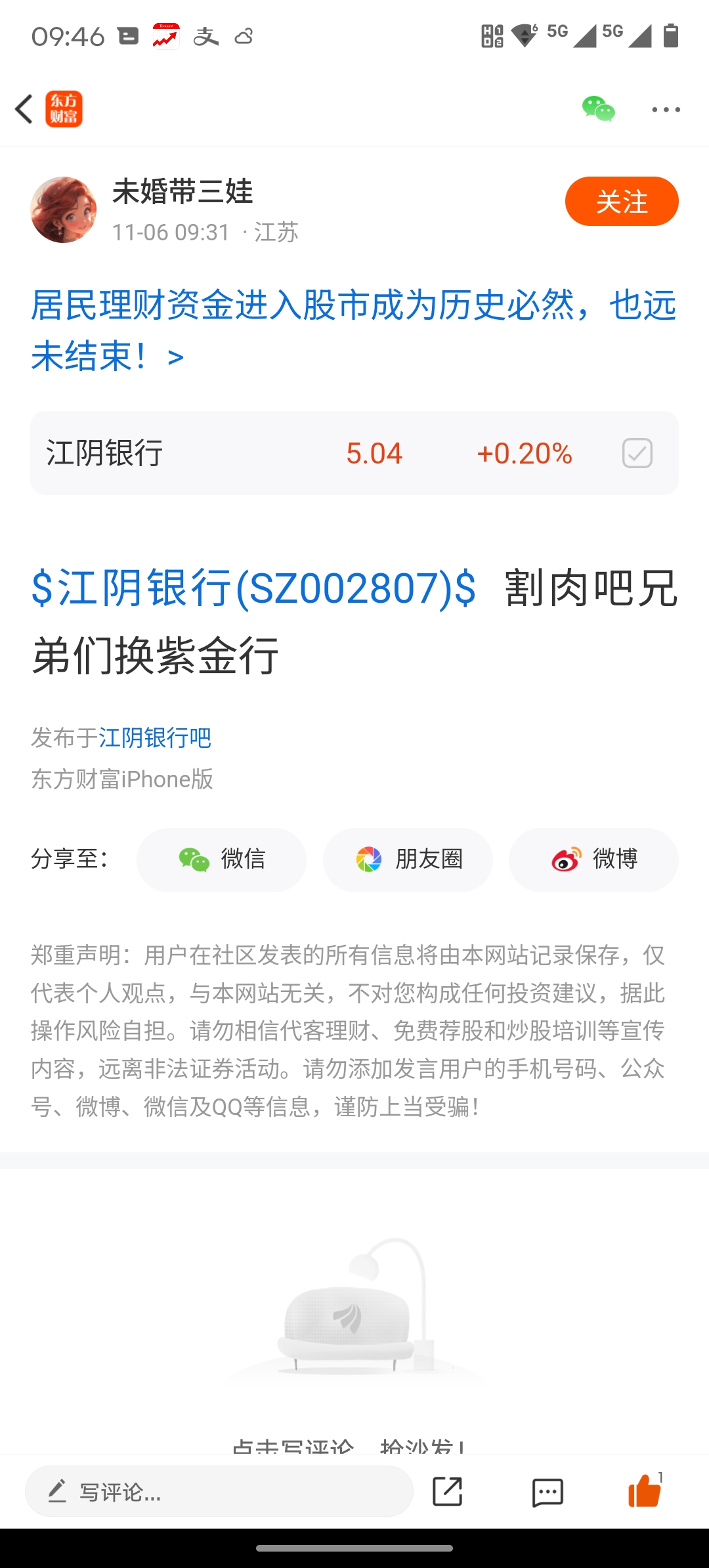 $江阴银行(SZ002807)$ 快听,她割还是买,哈哈,