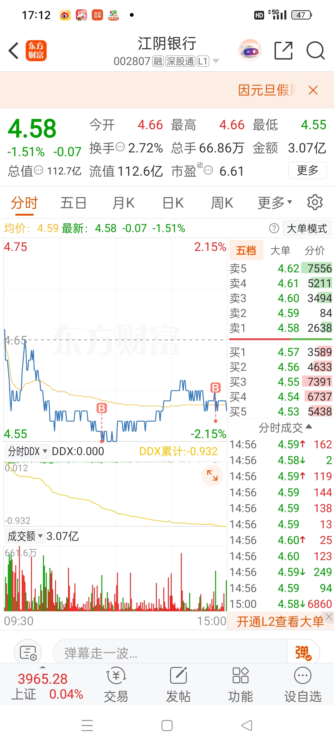 $江阴银行(SZ002807)$ 今天又补了点,算了外面的波动不适合我,还是躲在角落分点红算了,牛市跑来跑去一年到头也没挣钱还精神紧张。