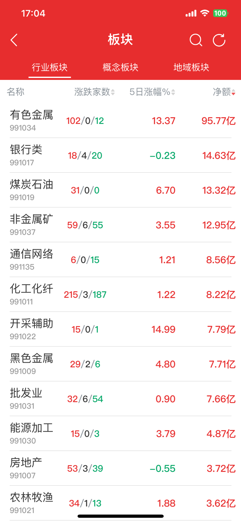 今天银行板块资金流入第二。有色第一,有色是顶部流入,有诱多嫌疑。银行板块底部流入