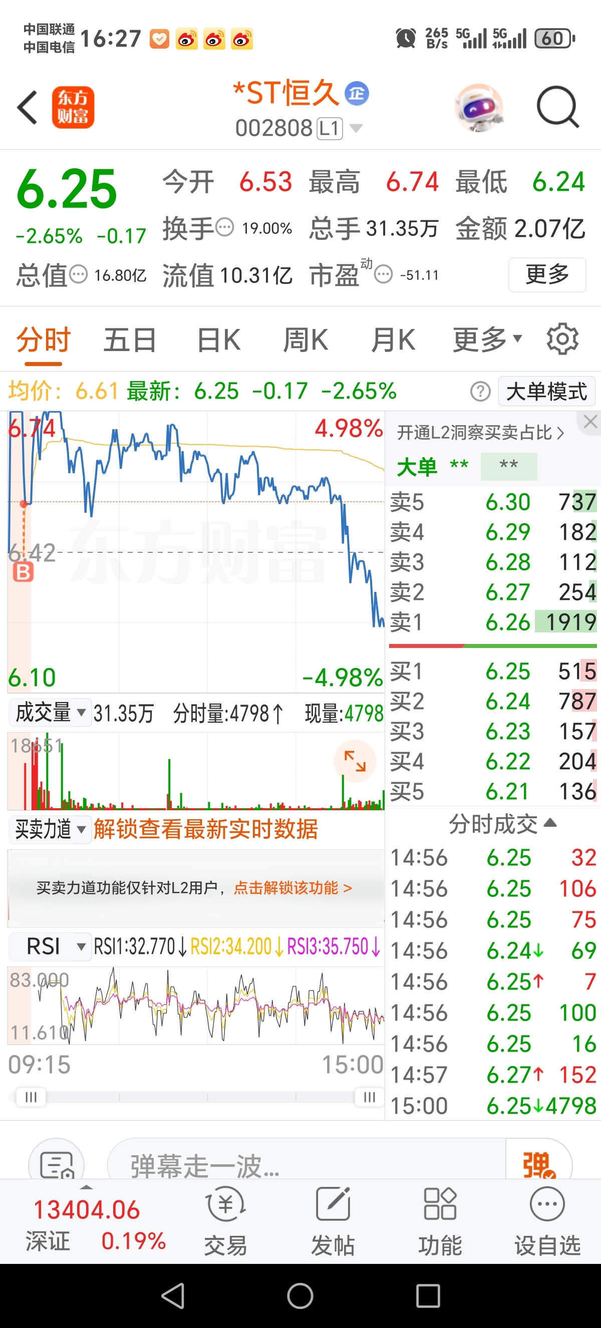 $*ST恒久(SZ002808)$ 万方,不加仓买了你,看就几天今天卖入吃向下五个点