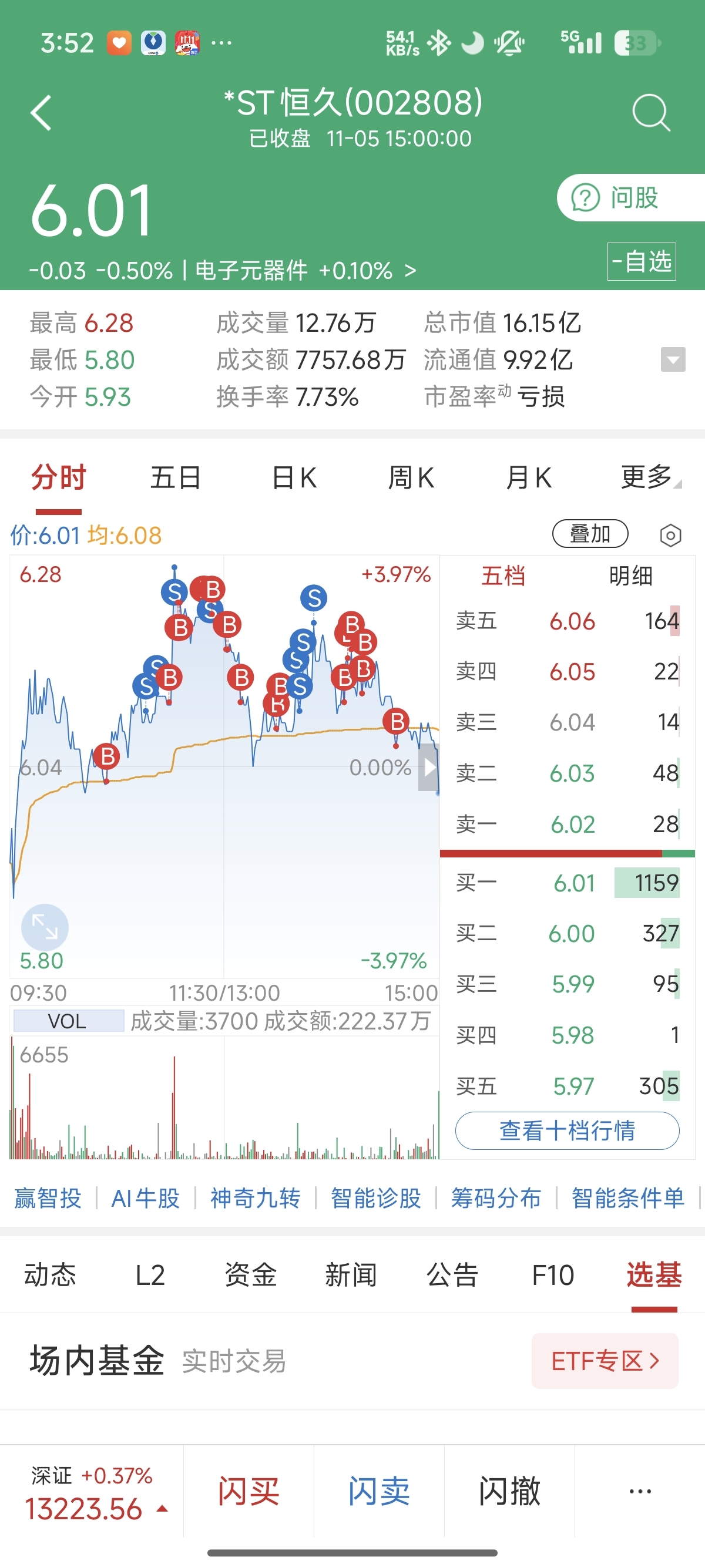 $*ST恒久(SZ002808)$ 操作来操作去一场空,每次尾盘跳水