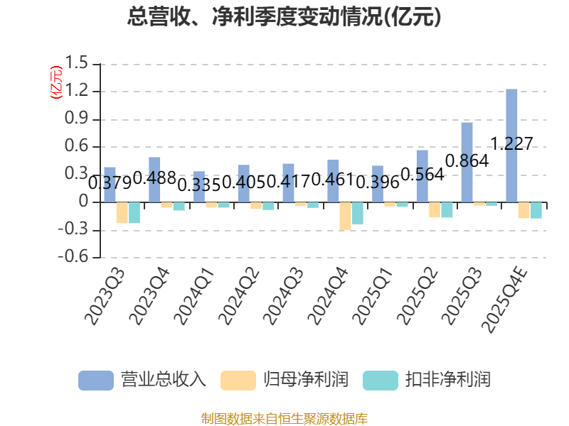 中证智能财讯 *ST恒久(002808)1月30日晚间披露2025年度业绩预告,预计2025年实现营业收入2.8亿元至3.3亿元;归母净利润亏损3400万元至5000万元,上年同期亏损4710.4万元;扣非净利润亏损3500万元至5100万元,上年同期亏损4444.15万元;基本每股收益-0.126元/股至-0.186元/股。以最新收盘价计算,市净率(LF)约5.88倍,市销率(TTM)约5.03倍。