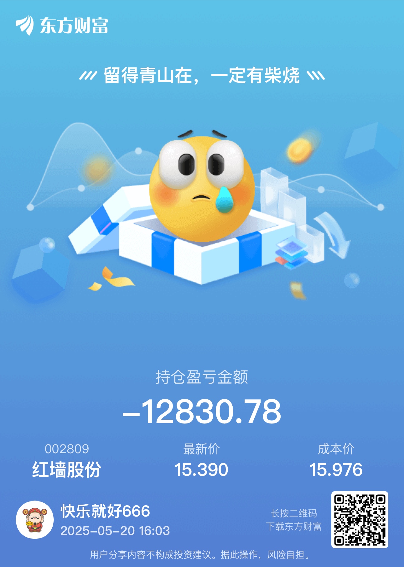 温馨提示: 1.根据《证券法》规定,禁止编造、传播虚假信息或者误导性信息,扰乱证券市场;2.用户在本社区发表的所有资料、言论等仅代表个人观点,与本网站立场无关,不对您构成任何投资建议。用户应基于自己的独立判断,自行决定证券投资并承担相应风险。《东方财富社区管理规定》