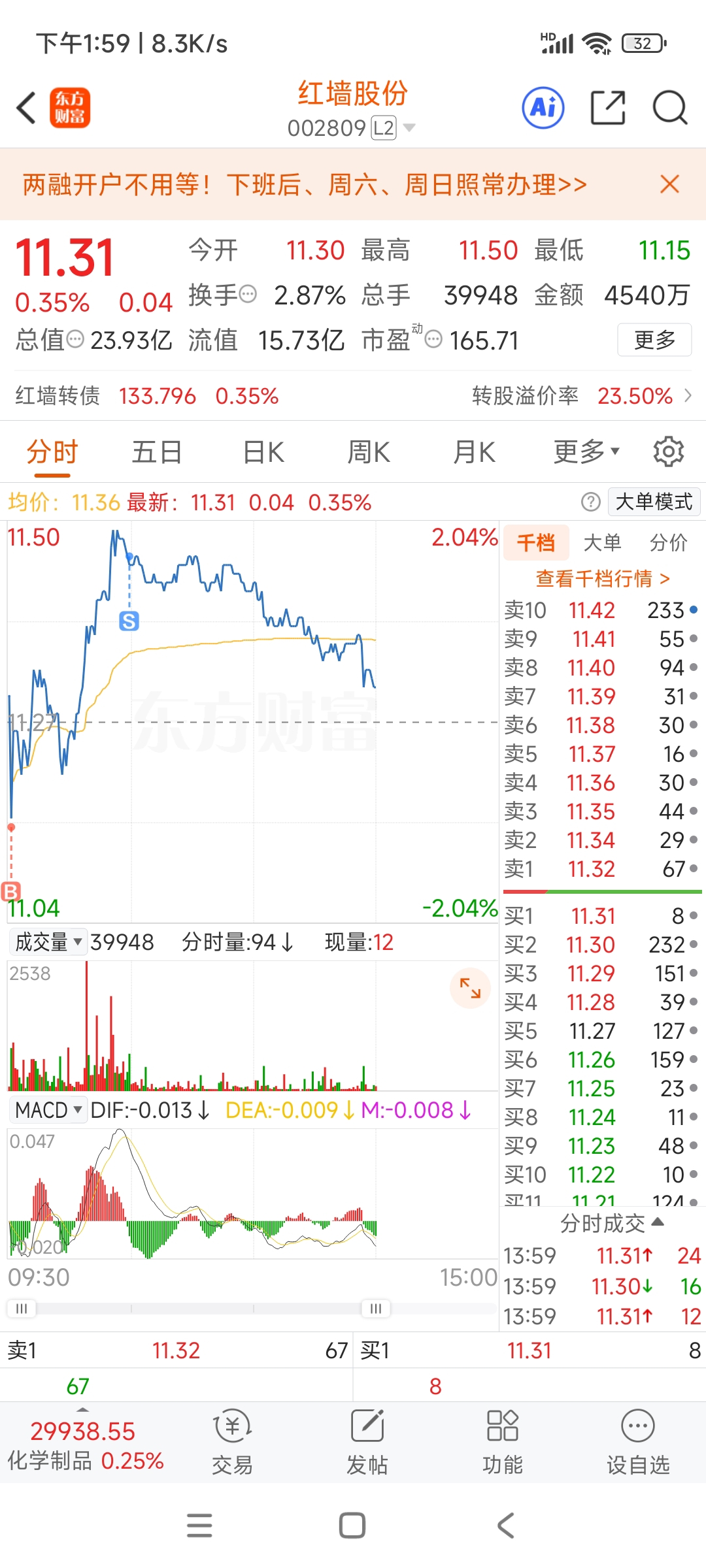 $红墙股份(SZ002809)$ 全家出事的 奉陪到底