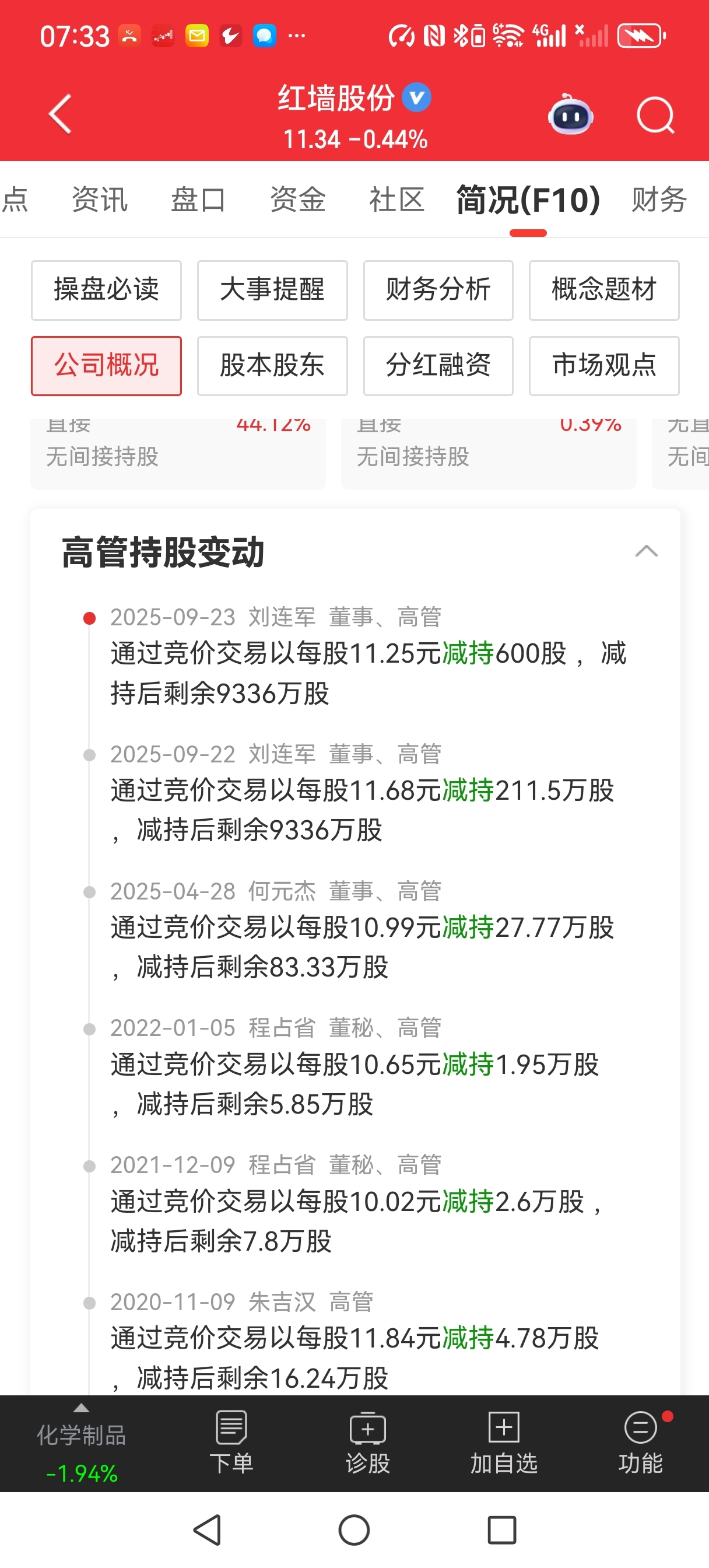 $红墙股份(SZ002809)$ 减持的差不多了!估计也快拉了