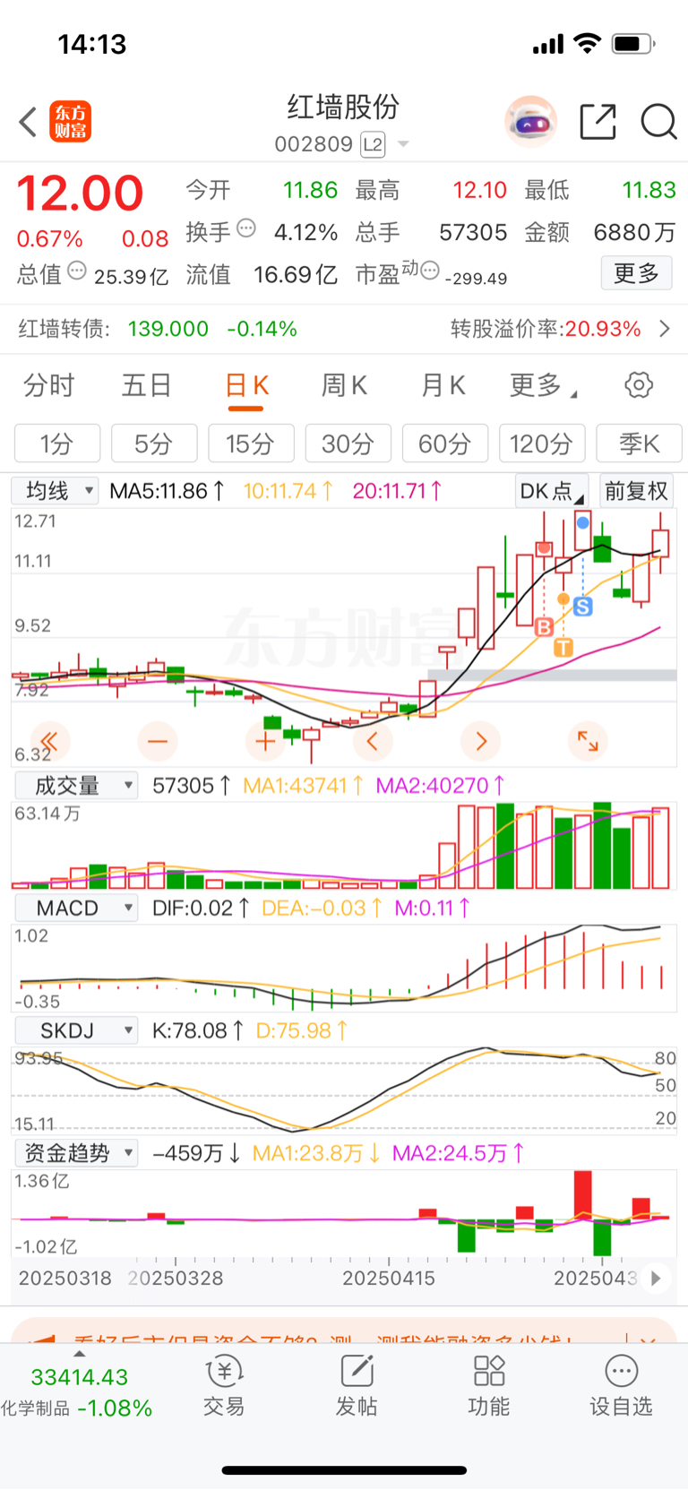 $红墙股份(SZ002809)$ 底部,起爆图