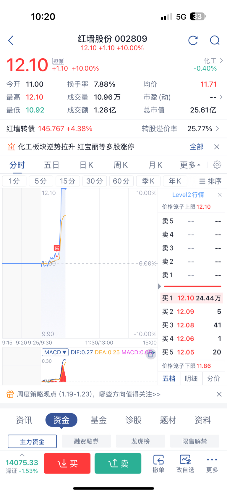 $红墙股份(SZ002809)$ 可惜了从3000股减到500股,今天加仓1000股,竟然会涨停