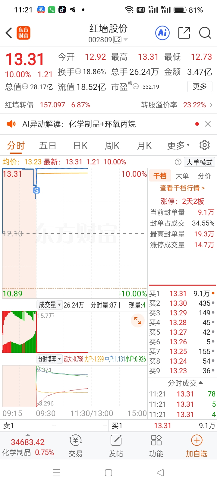 $红墙股份(SZ002809)$ 还有谁一起的,被洗出去了