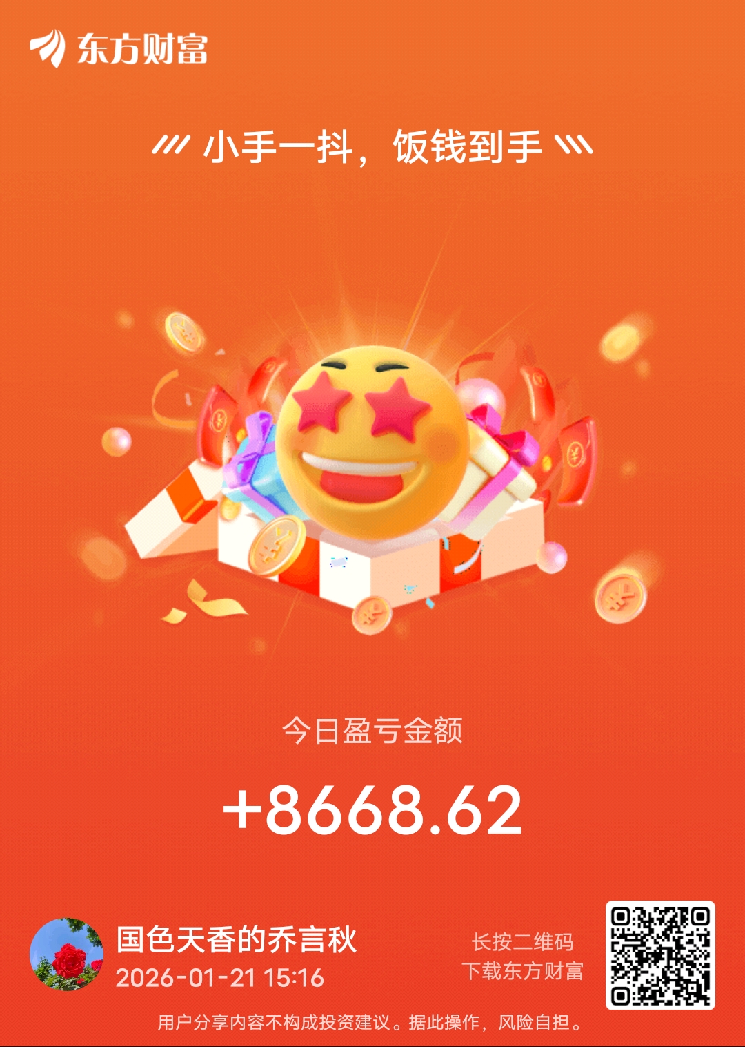 温馨提示: 1.根据《证券法》规定,禁止编造、传播虚假信息或者误导性信息,扰乱证券市场;2.用户在本社区发表的所有资料、言论等仅代表个人观点,与本网站立场无关,不对您构成任何投资建议。用户应基于自己的独立判断,自行决定证券投资并承担相应风险。《东方财富社区管理规定》