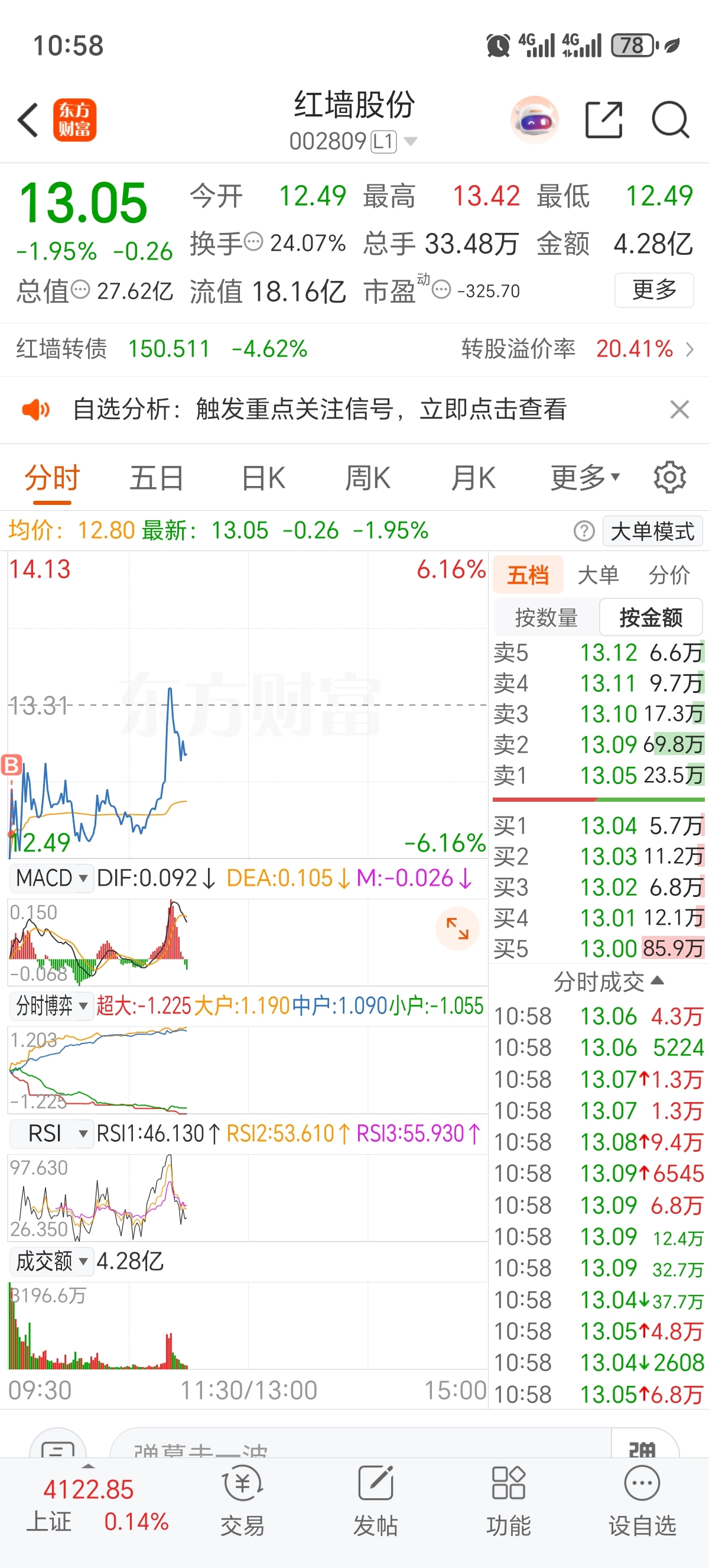 $红墙股份(SZ002809)$ 我来了,你懂的