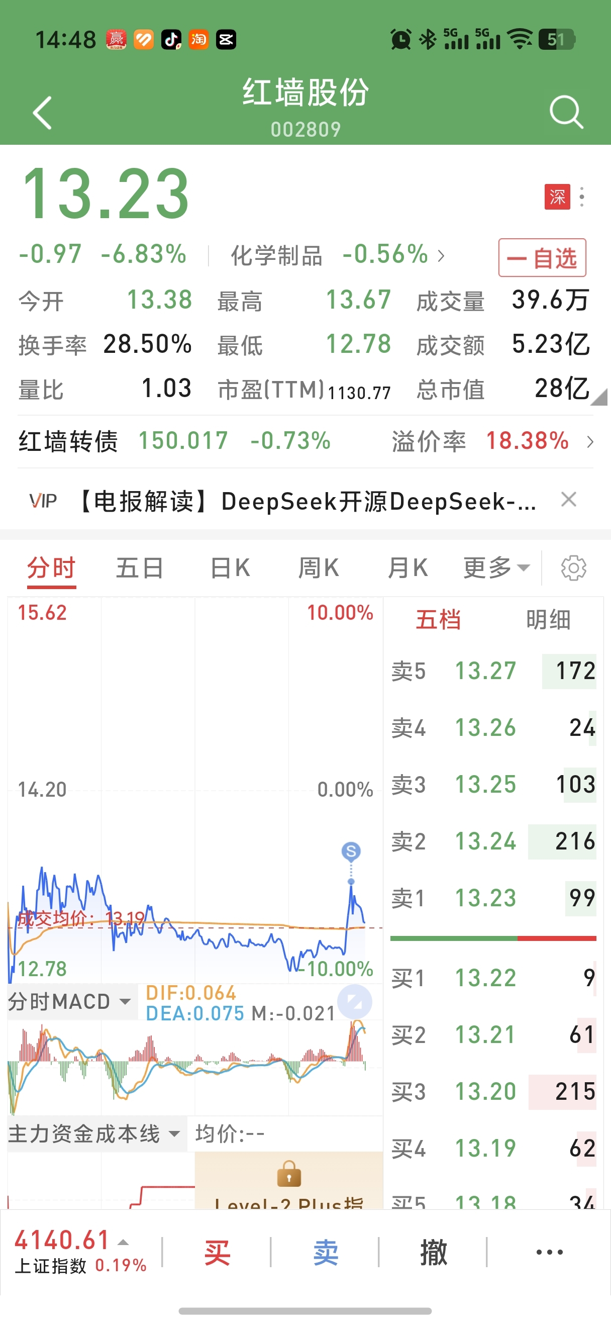 $红墙股份(SZ002809)$ 受不了了 886