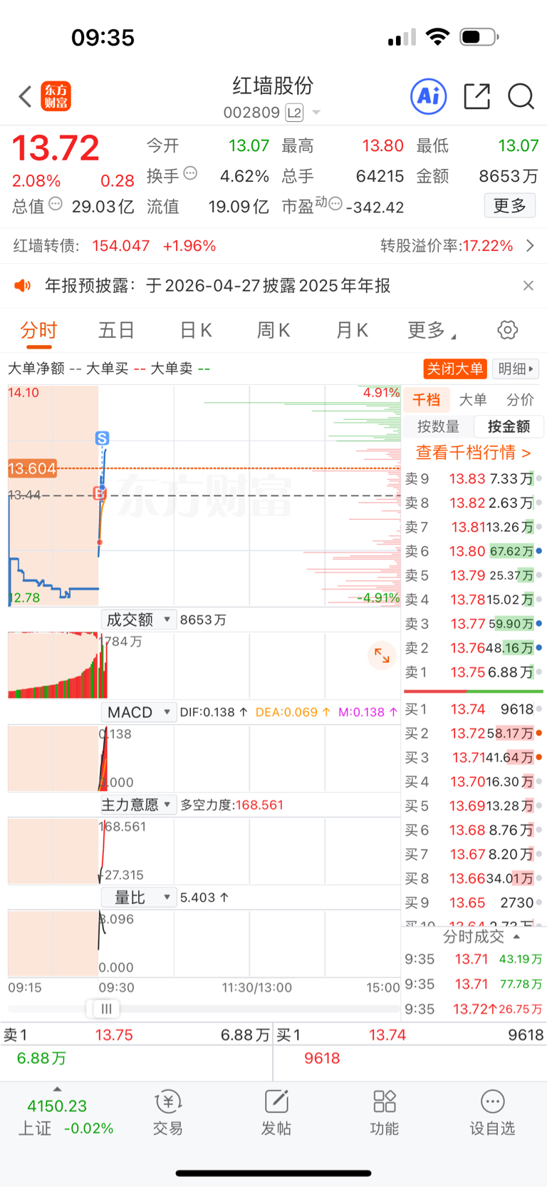 $红墙股份(SZ002809)$ 又少卖1000块……