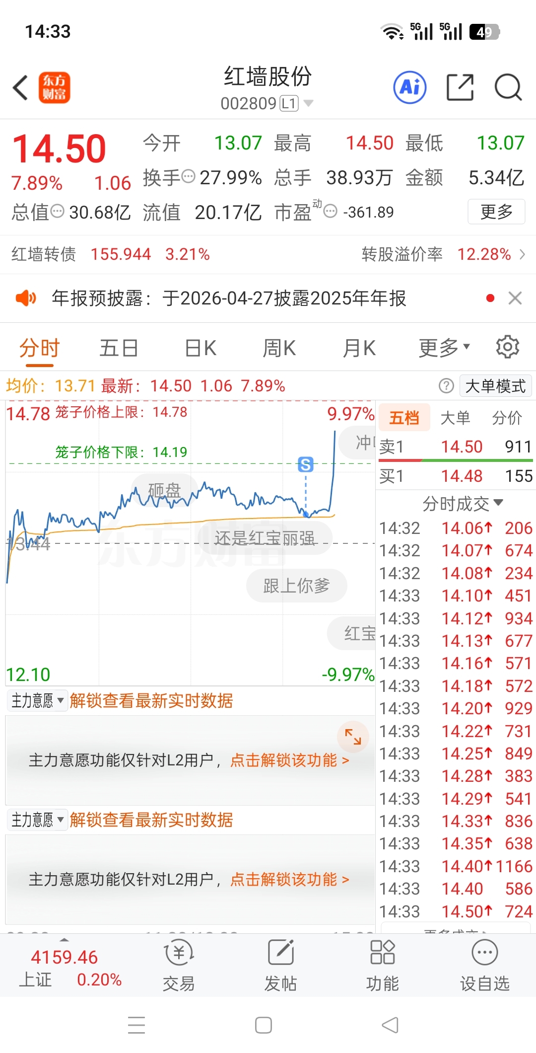 $红墙股份(SZ002809)$
