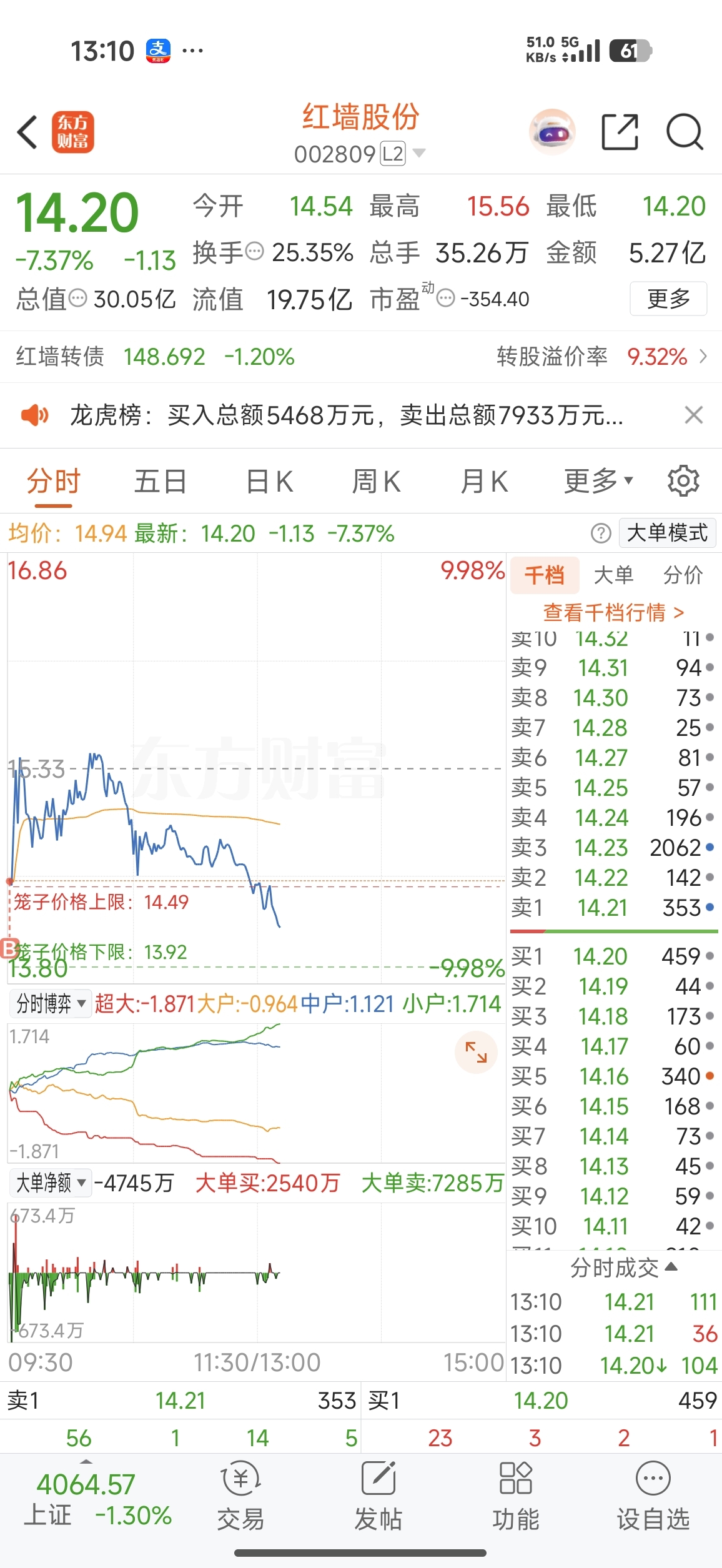 $红墙股份(SZ002809)$ 开盘买的,眼看红了,我以为悟道了,唉,现在是痛的领悟