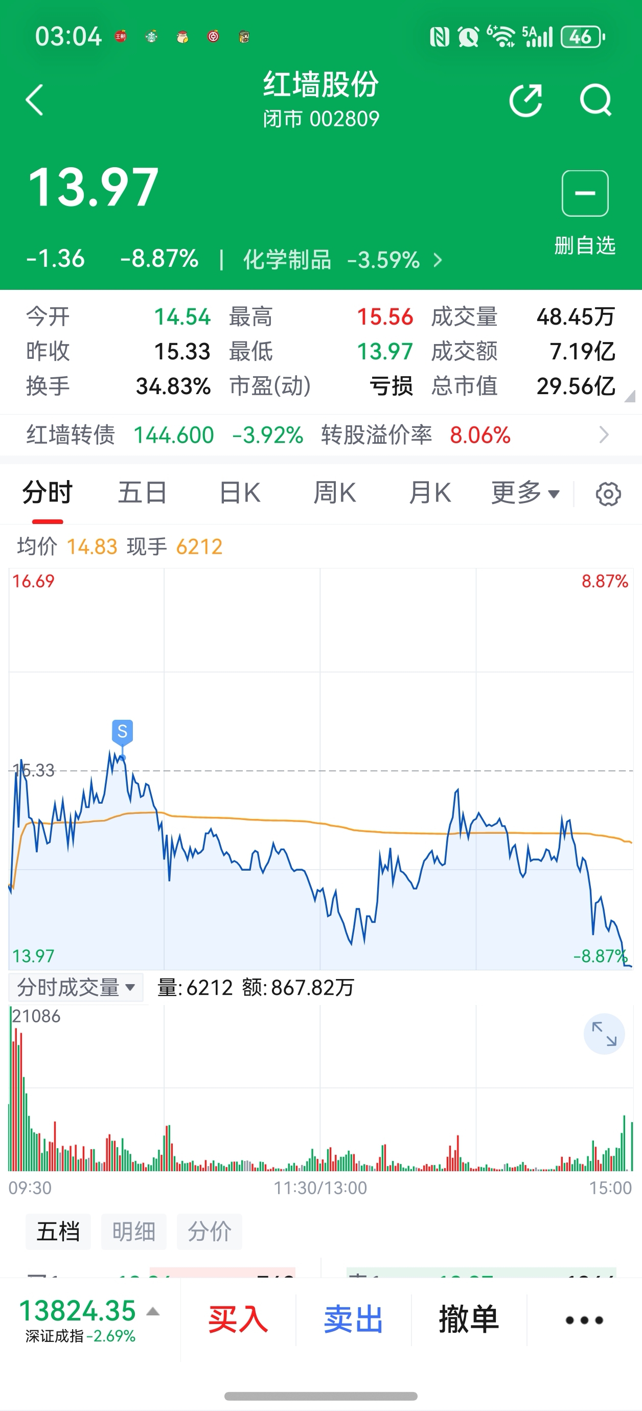 $红墙股份(SZ002809)$