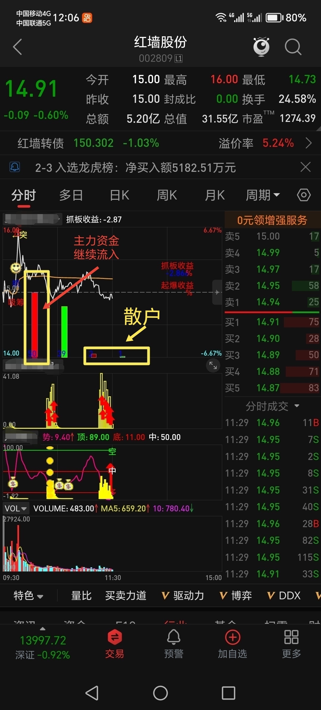 $红墙股份(SZ002809)$ 13个交易日净流入5个亿,这个量能连个加速都没走,连个涨停都还没出,你认为会结束吗,大胆持股迎接大肉,只做预判不做马后炮,记录个人投资历程,观点不构成操作建议!