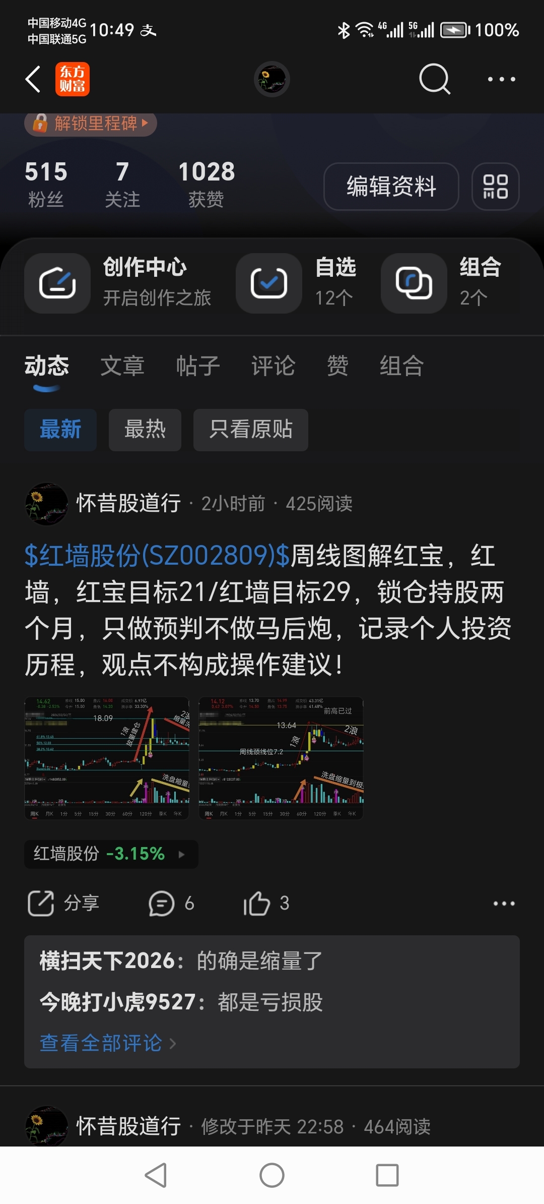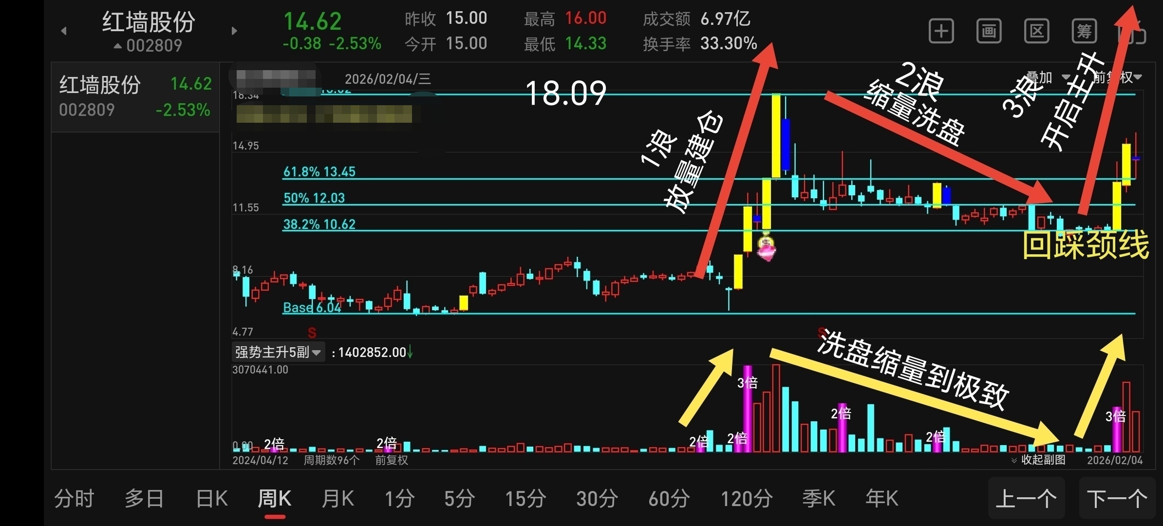 $红墙股份(SZ002809)$ 是不是被砸懵了,看看周线图,心里就平静了!锁仓两个月见分晓!只做预判不做马后炮,记录个人投资历程,观点不构成操作建议