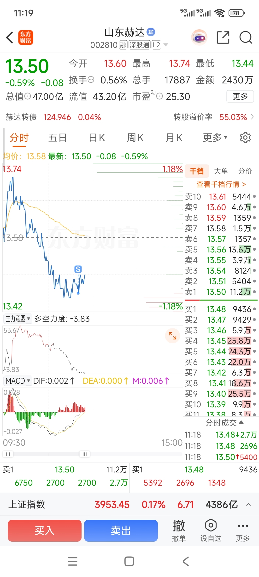 $山东赫达(SZ002810)$ 老规矩,我不卖,他不拉