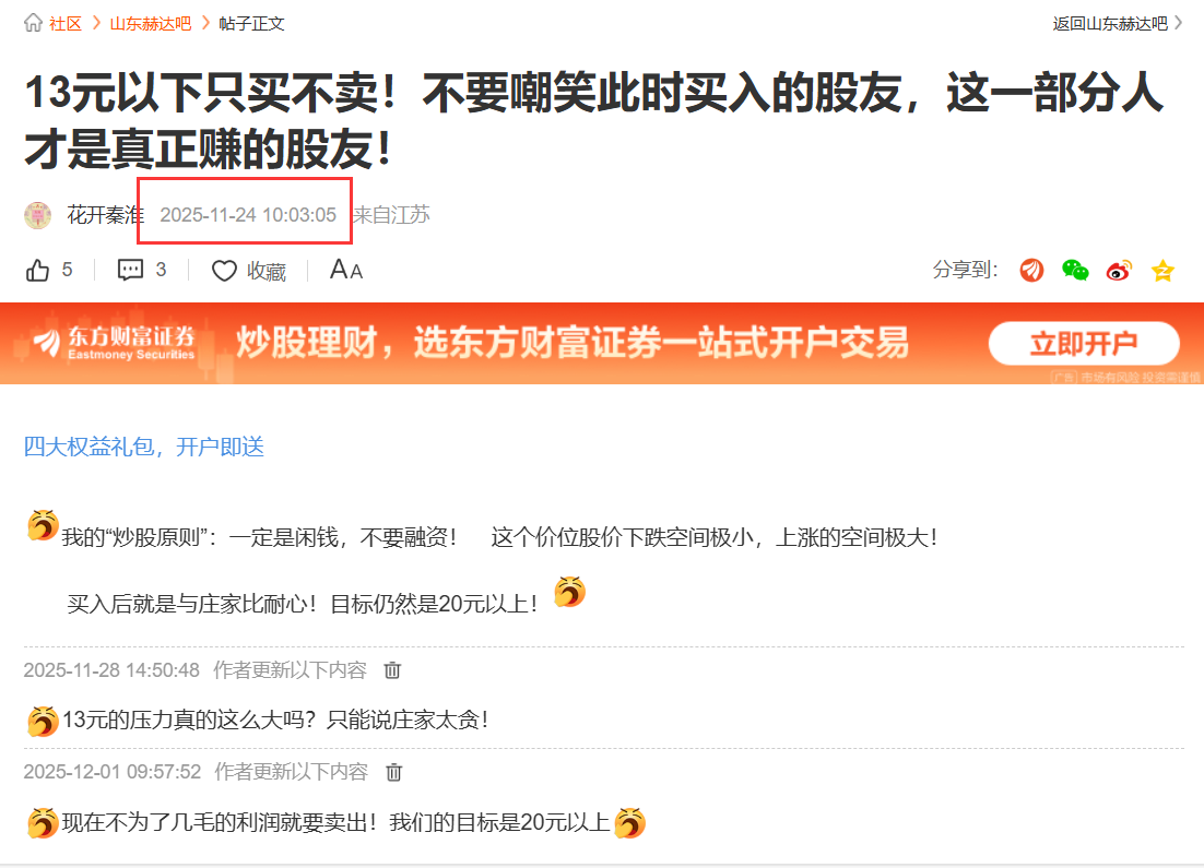 温馨提示: 1.根据《证券法》规定,禁止编造、传播虚假信息或者误导性信息,扰乱证券市场;2.用户在本社区发表的所有资料、言论等仅代表个人观点,与本网站立场无关,不对您构成任何投资建议。用户应基于自己的独立判断,自行决定证券投资并承担相应风险。《东方财富社区管理规定》