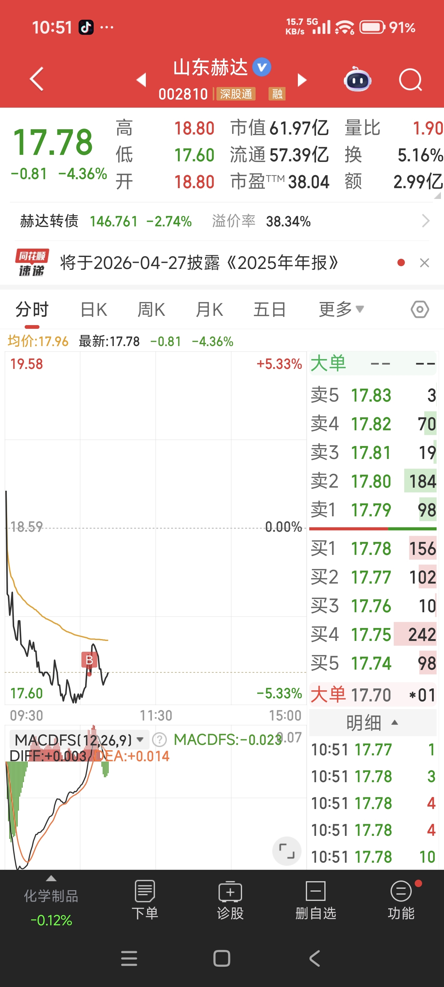 $山东赫达(SZ002810)$ 洗洗更健康,分批开始吃了