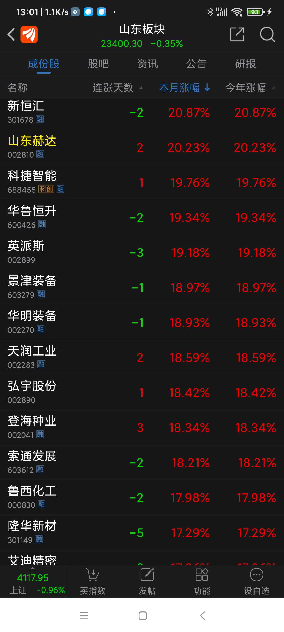 山东板块26年元月涨幅8.15%,山东赫达涨幅20.23%,名列山东板块(共有3