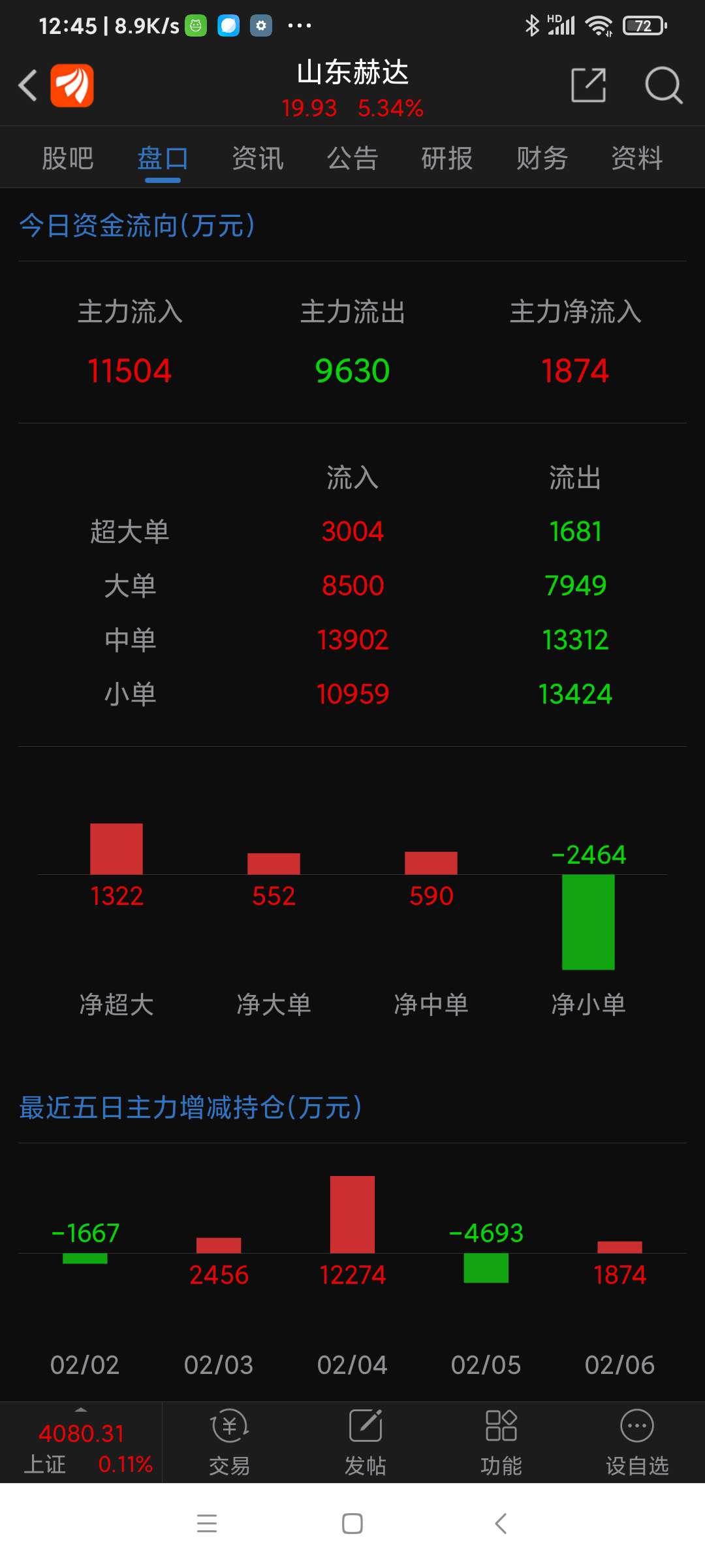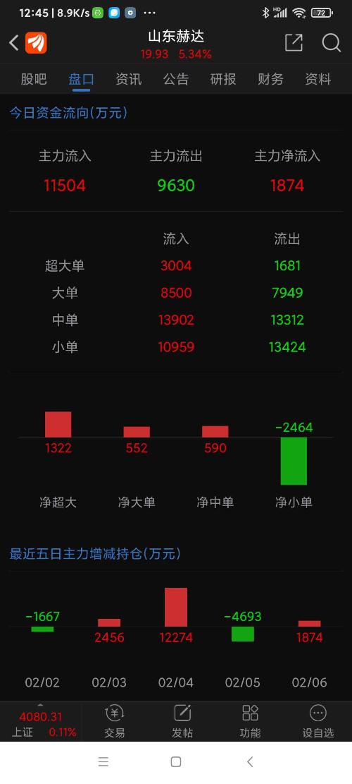 山东赫达等九股,今日上午资金净流入一览。