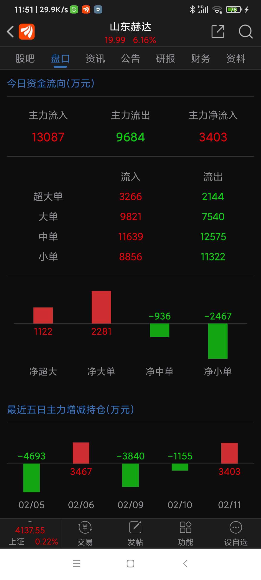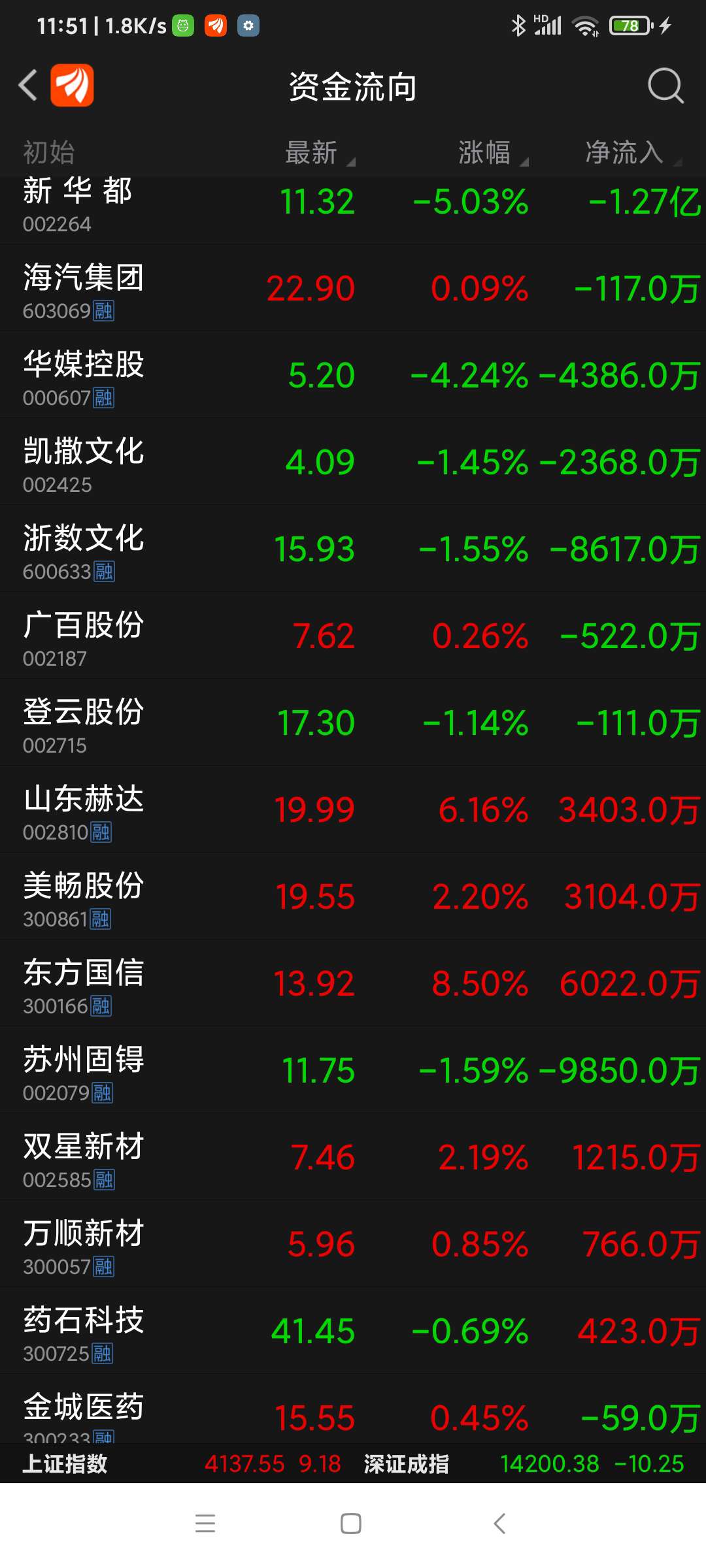 山东赫达等八股,今日上午资金净流入一览。