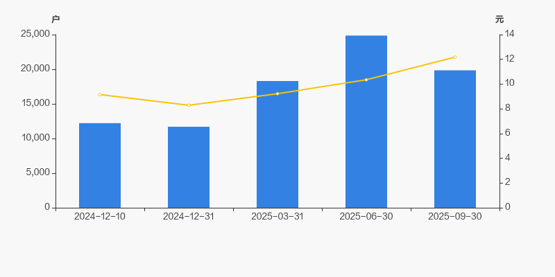 2024年12月10日至今,公司股东户数显著大幅增长,区间涨幅达62.43%。2024年12月10日至2025年9月30日区间股价上涨33.17%。