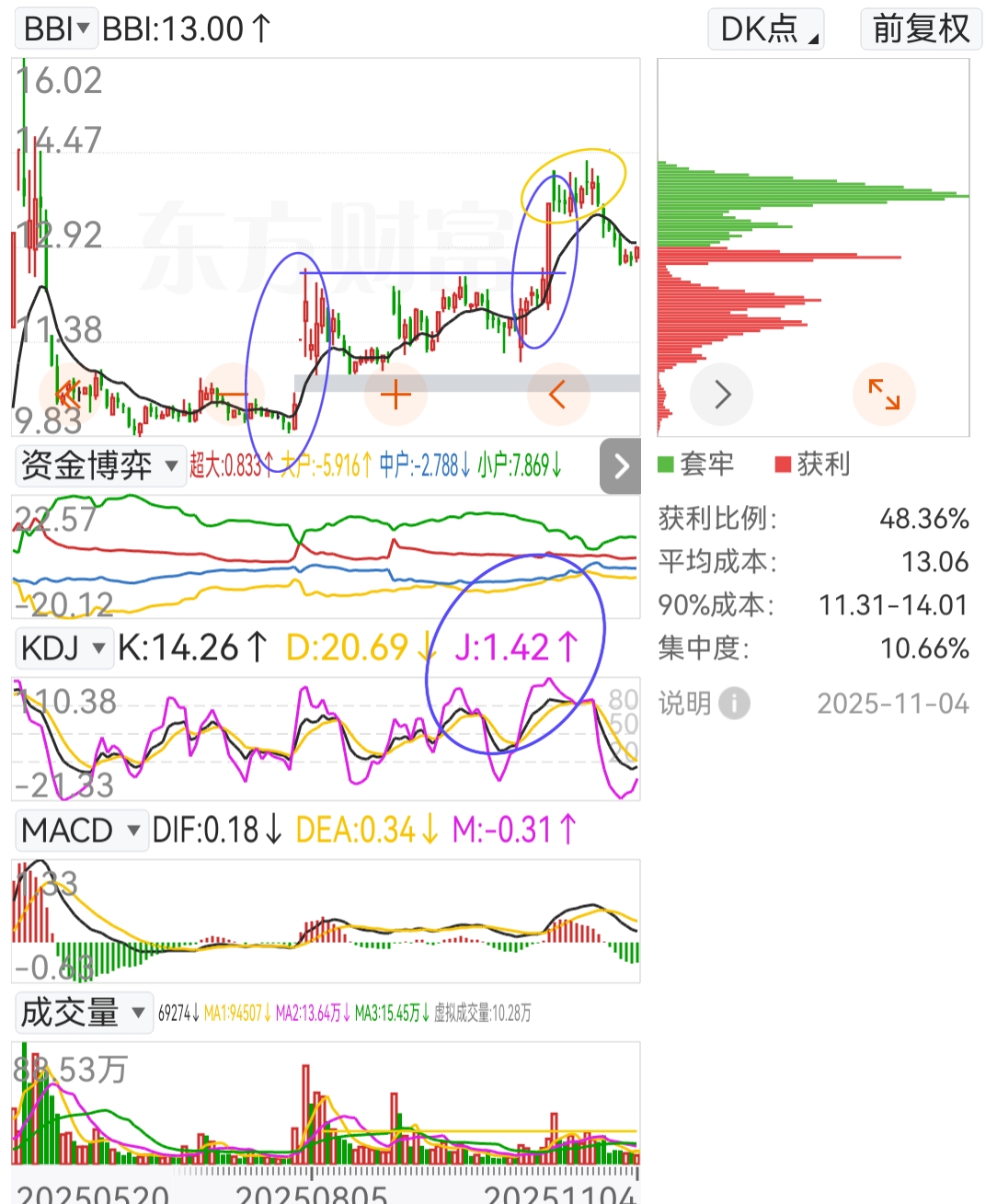 放量异动进场,箱体震荡洗盘,放量突破,顶部无量,缩量回调不破前高,J值新低,等一