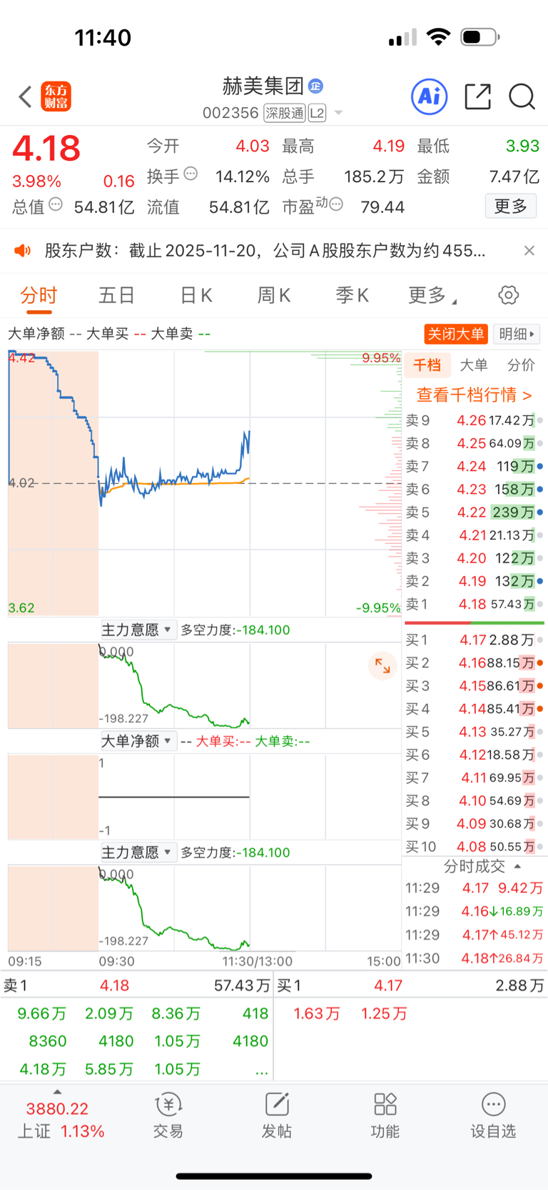 早上看上的赫美都3个点,欢瑞涨停,这杂毛一个点都没有