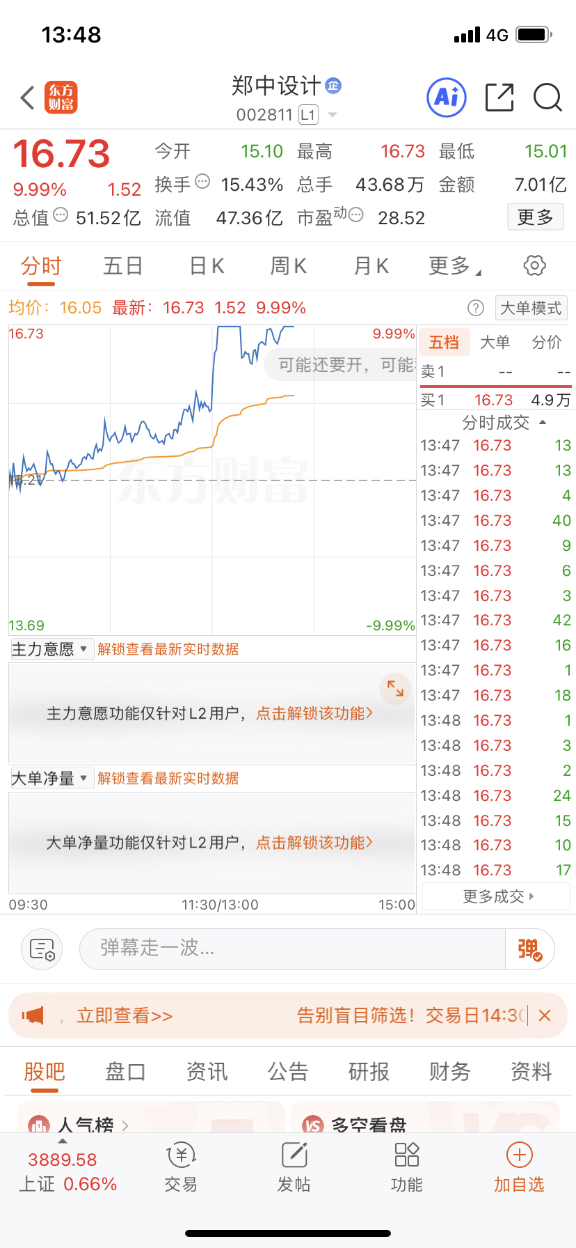 昨日早盘低吸介入的$郑中设计(SZ002811)$ 成功再次封板,恭喜同车的兄弟们