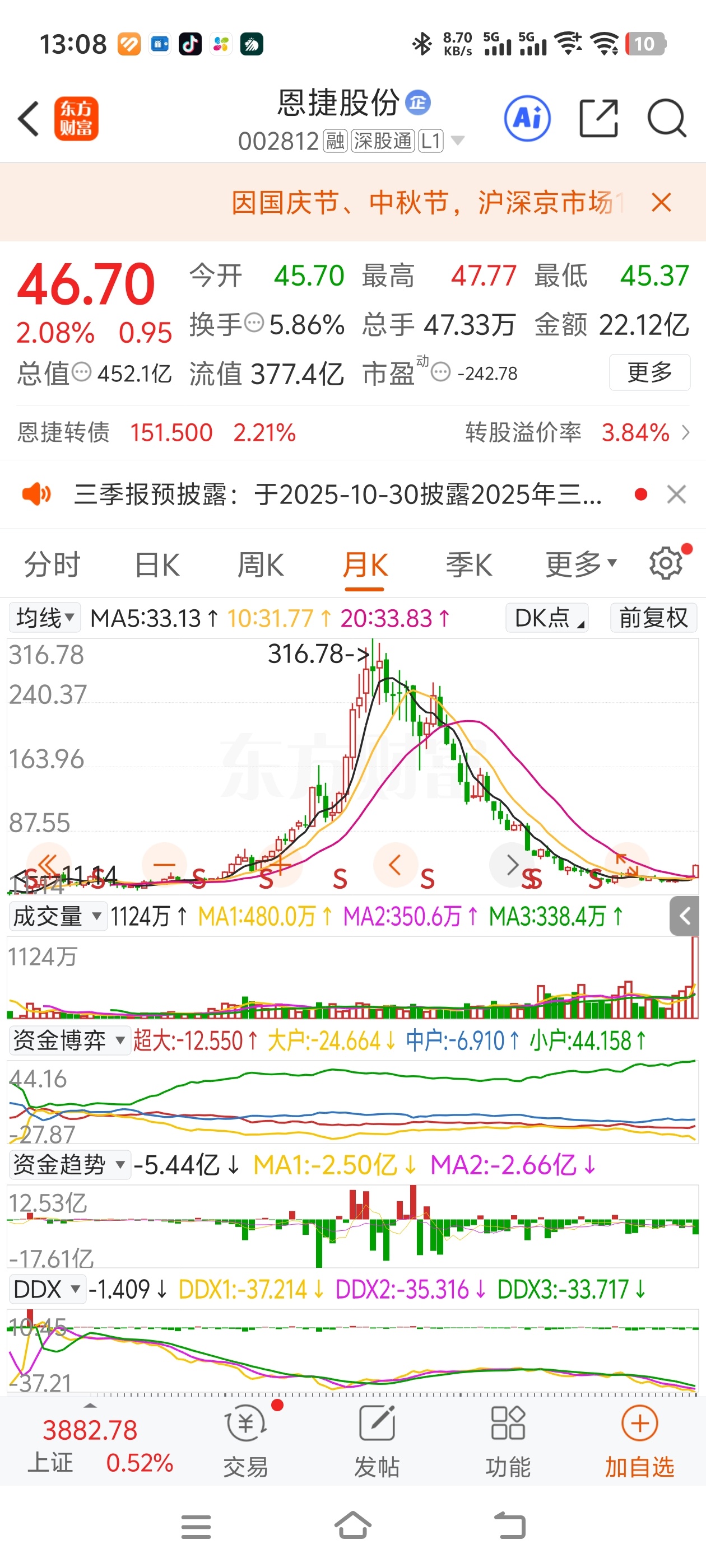 $恩捷股份(SZ002812)$ 怕毛线球,底部放量再看不懂眼瞎了,这得涨到400
