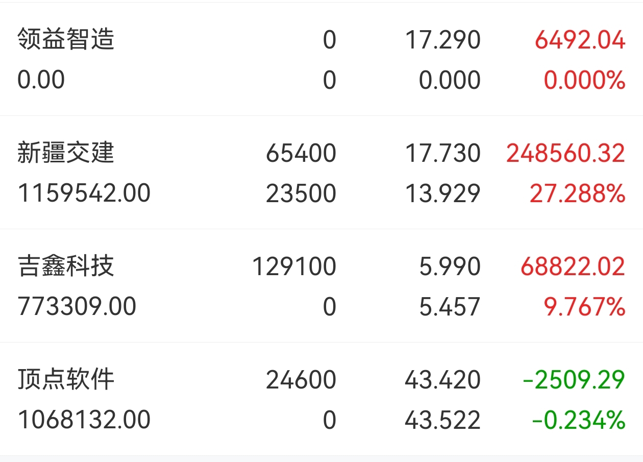 9月25让大家进新疆交建,有人进没?节前跌停价进的吉鑫,也有收获。今天进了顶点软