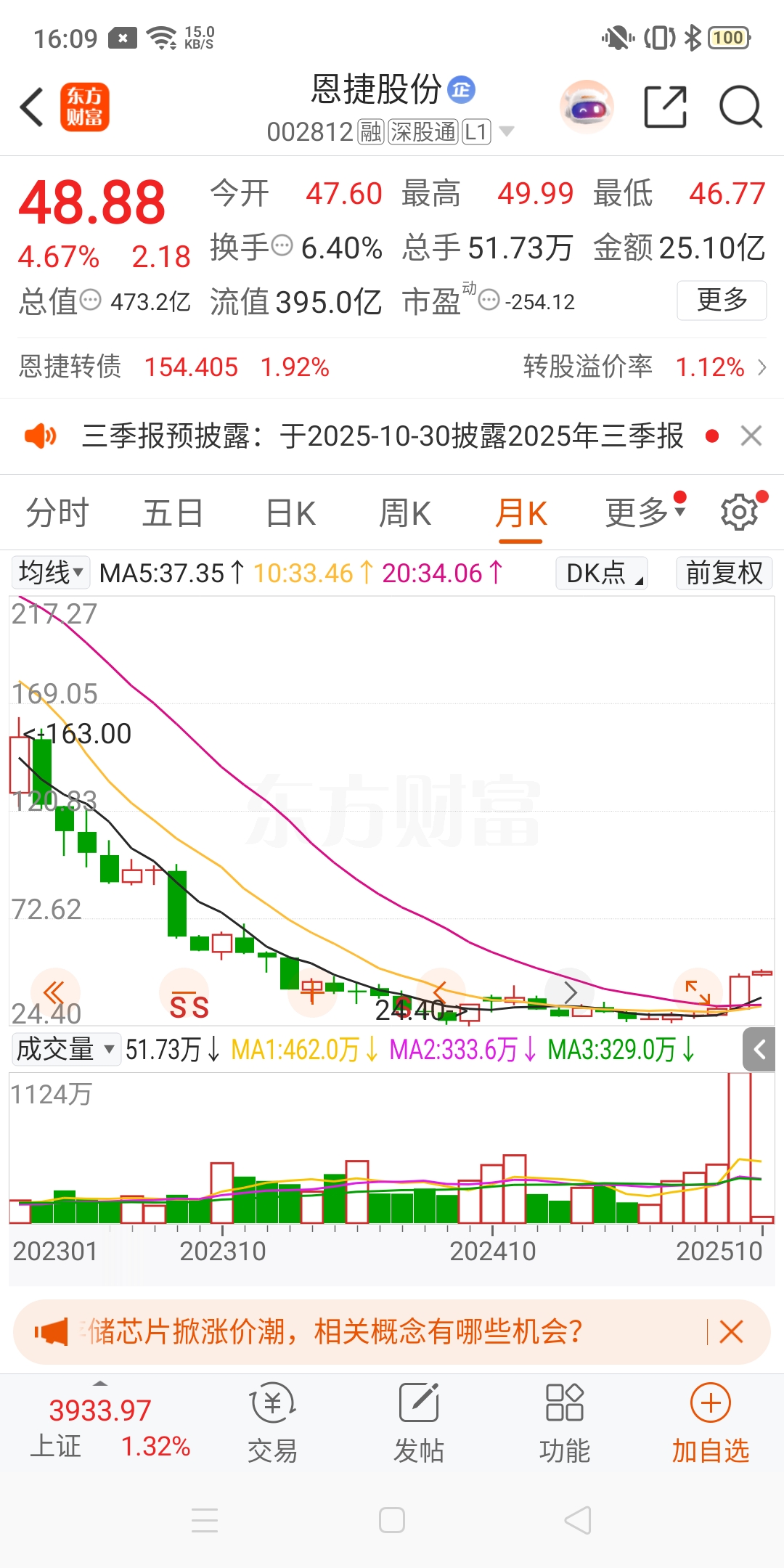 $恩捷股份(SZ002812)$ 跌几年了,怎么敢近两个月会涨?