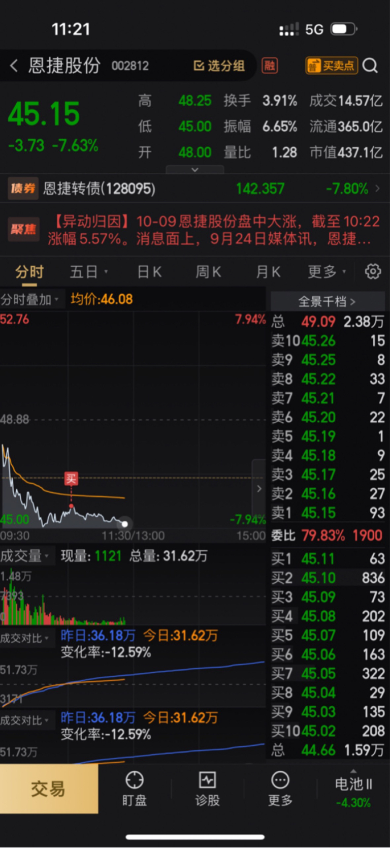$恩捷股份(SZ002812)$ 加仓!赌一把