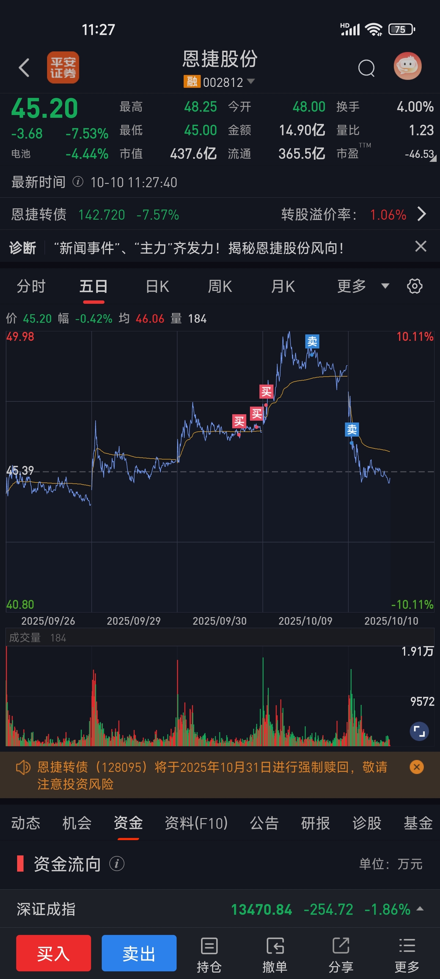 $恩捷股份(SZ002812)$ 瀑布杀,差点把盈利吐没了,还好昨天卖出一半