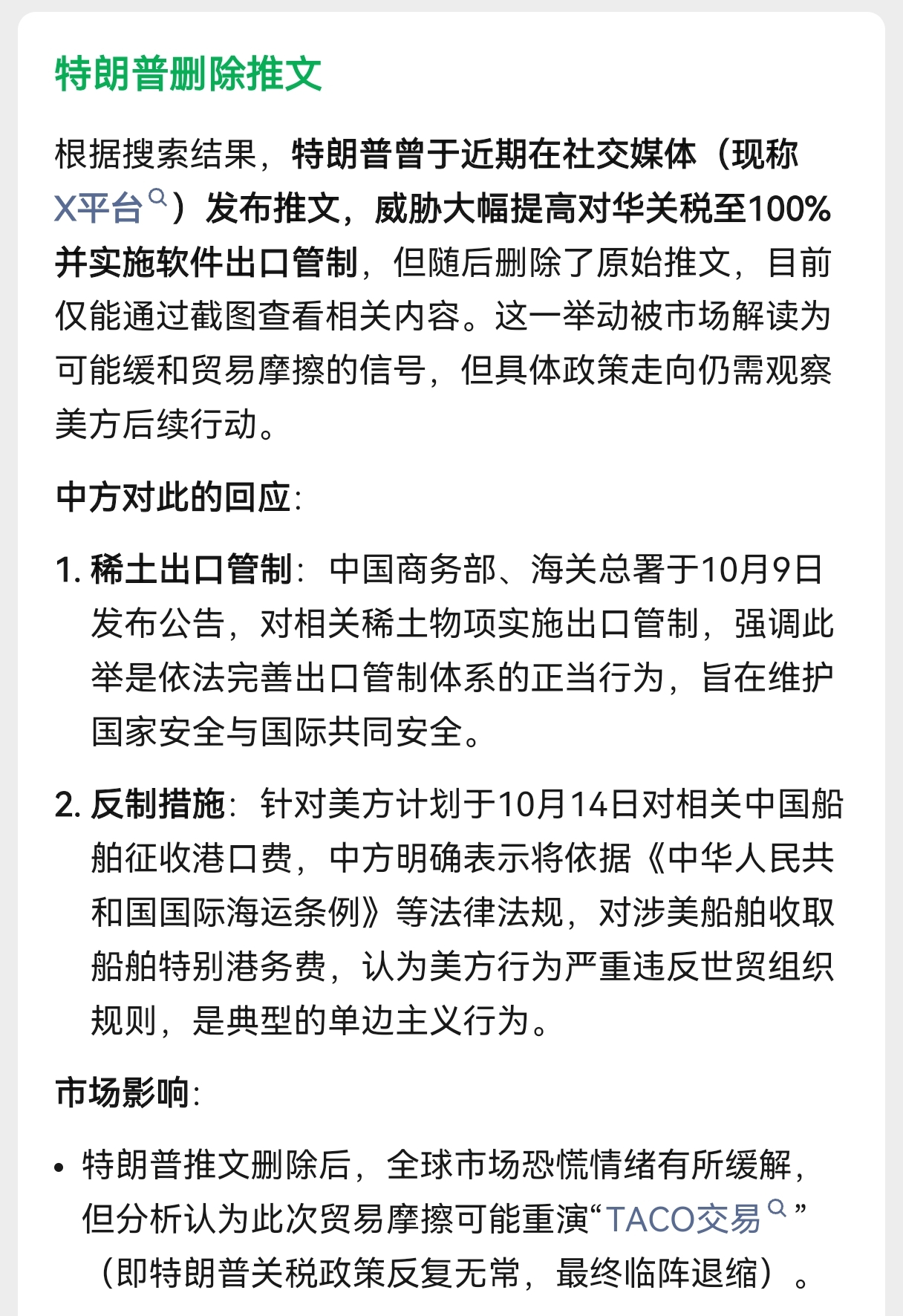 这是缓和信号,至少说明硬上川普也没底,有顾虑。