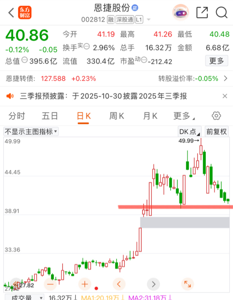 $恩捷股份(SZ002812)$ 主力心理战术,必须破前低,回踩39以下,才能再次接回,不然必然被埋。。。送给有缘人。。。