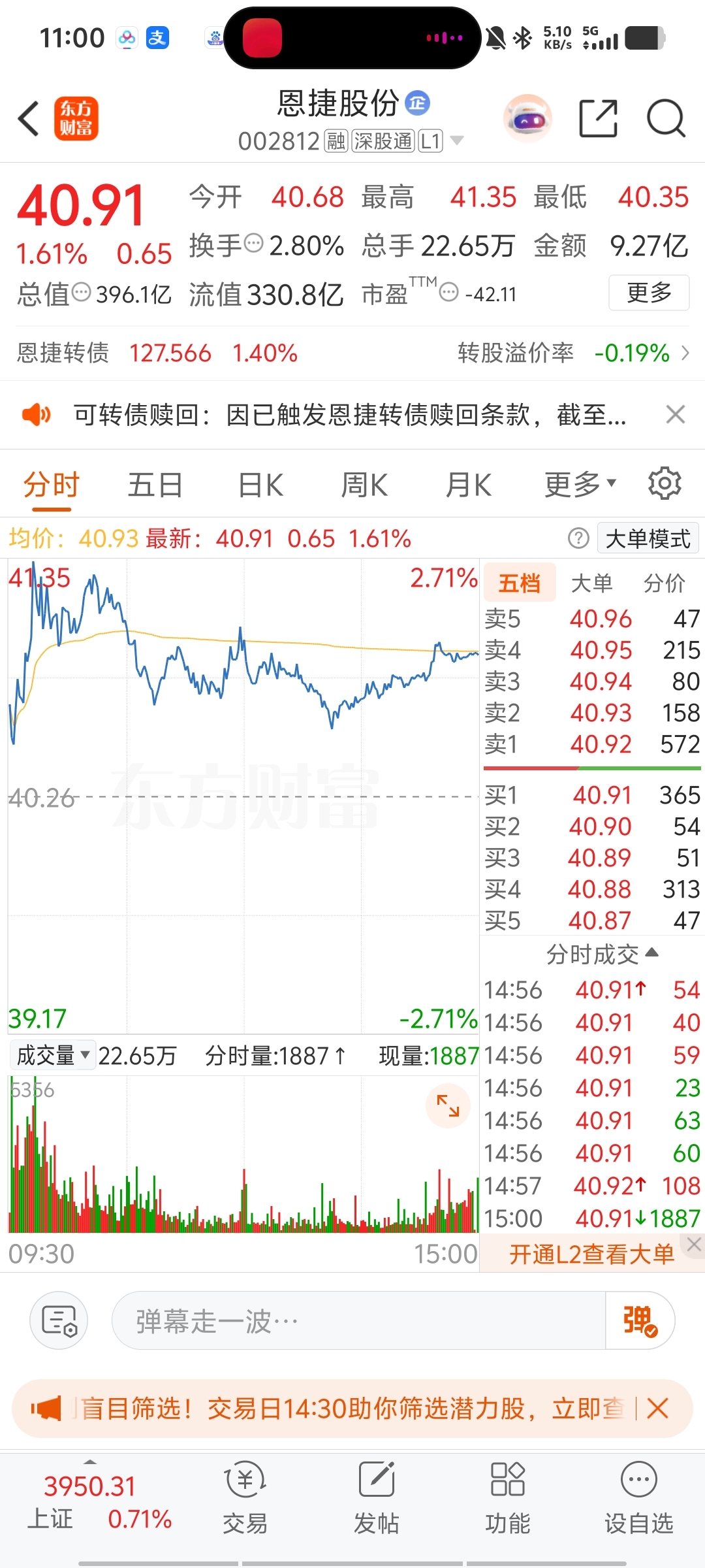 $恩捷股份(SZ002812)$ 你们发现了没有周五这个跳空缺口放了很大的量,而且没有被回补,如果周一不踩破,可以确认缺口有效,开启一波拉升