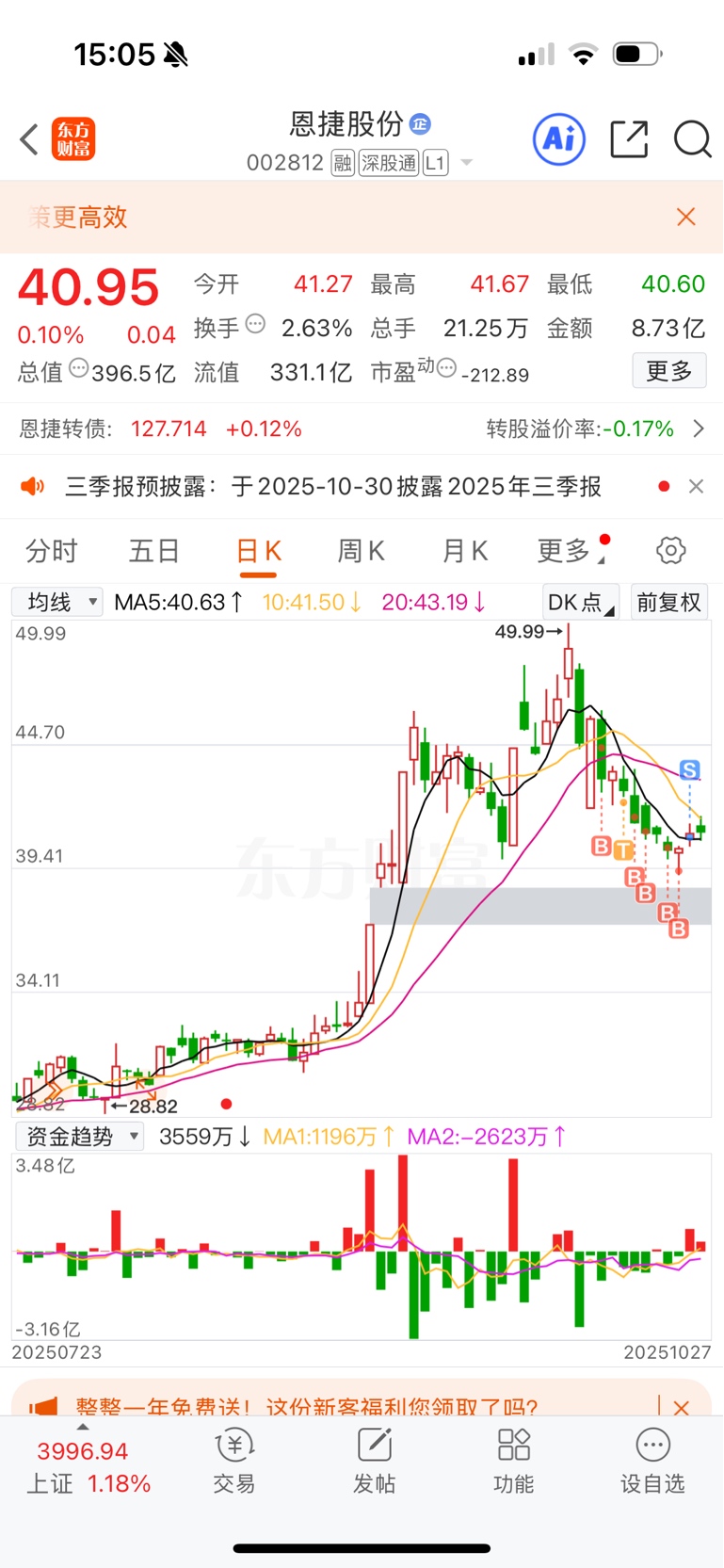 $恩捷股份(SZ002812)$ 我来之前你不是大涨就是涨停,我买你以后你不是大跌就是小跌,大盘板块都红你也涨不动了,主力盯着我?